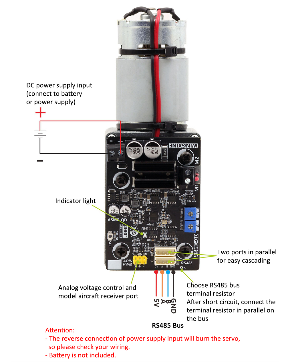 WINGXINE ASME-QDA 200Kg.cm Self-locking Worm Servo RS485 Bus Servo Supporting PWM & Voltage Control