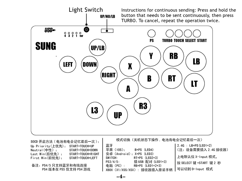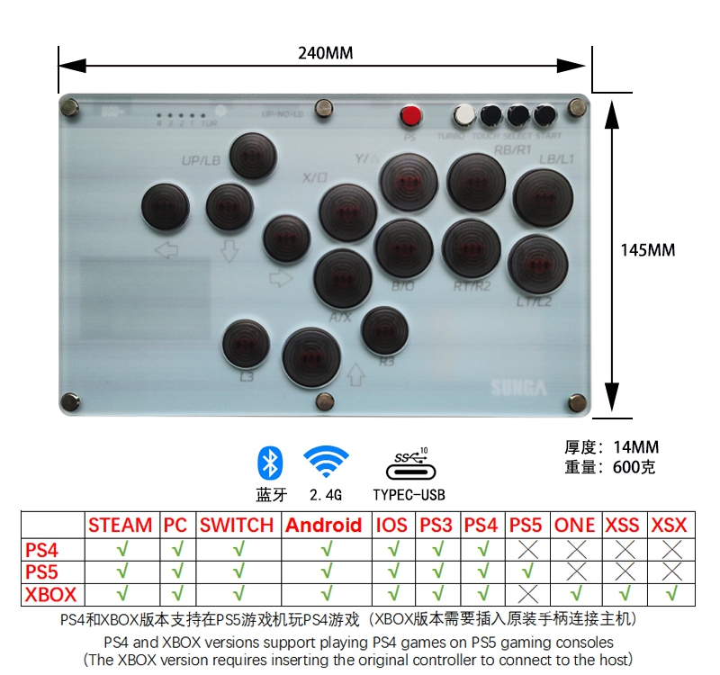 Wireless Hitbox Mini Game Keyboard Wireless 2.4G RGB Backlight Support SOCD Function for PS4 Version (Kailh Choc)