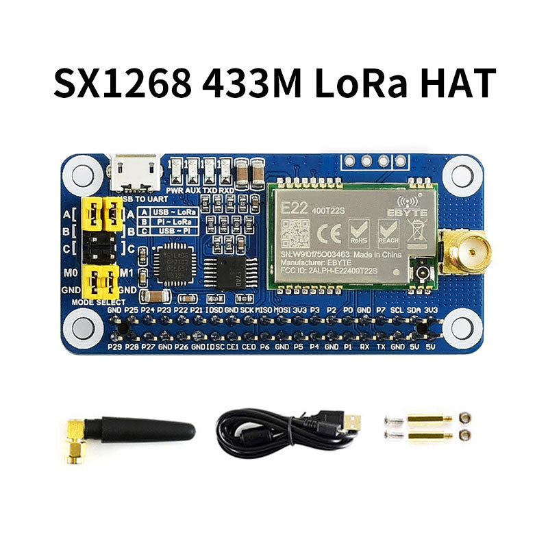 With SX1268, it is a extension board for Raspberry Pi LoRa, covers 433MHz frequency band. It allows data transmission up to 5km through serial port.