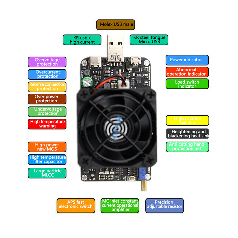 Witrn L007 with Switch 65W Adjustable Constant Current Electronic Load Mobile Power Supply USB Aging Discharge