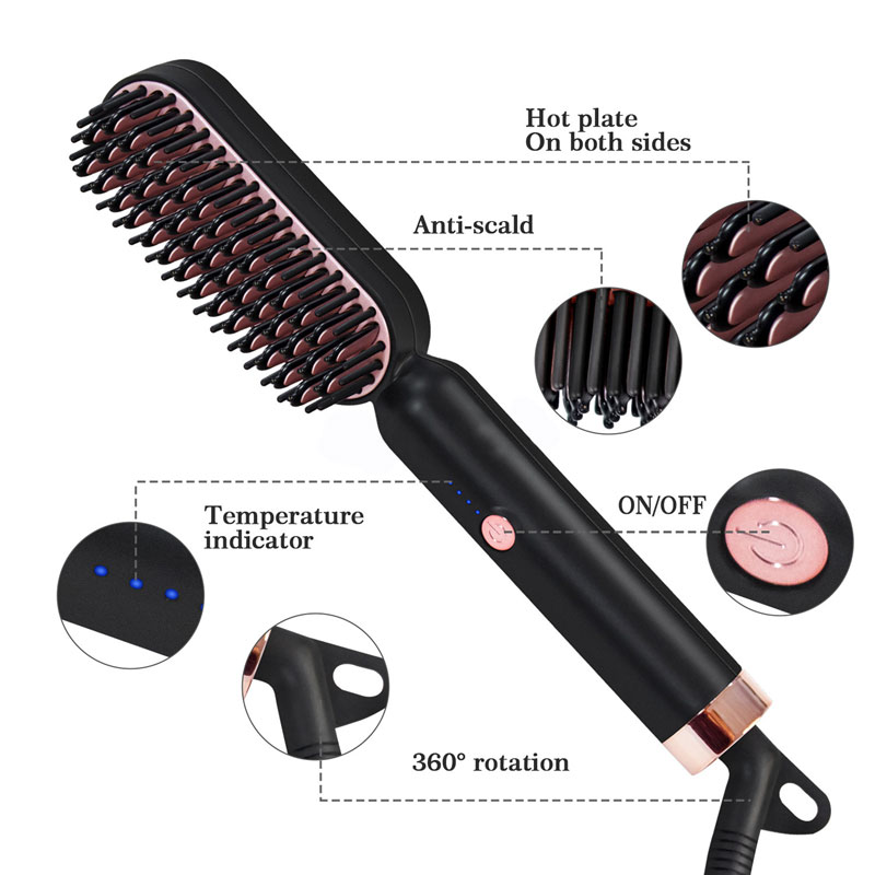 WT-065 Ceramic Thermostat Hair Straightener Brush Quick Beard Straightener Comb Beard Shaping Tool