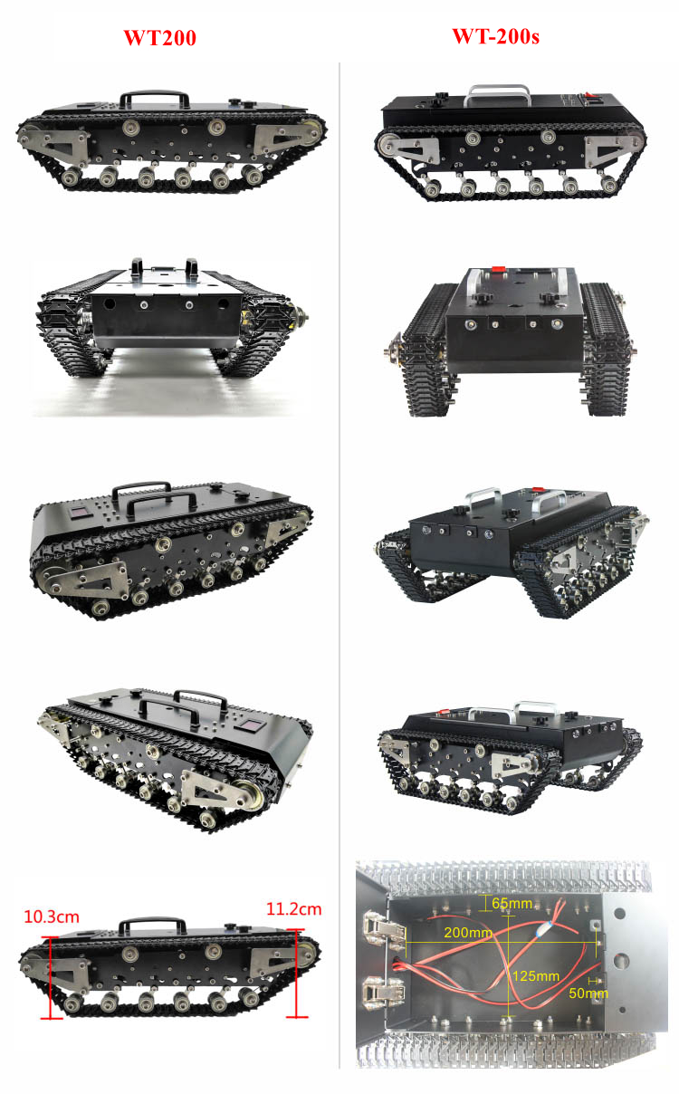 WT-200s Upgraded RC Tank Chassis Metal Track Tank Load 30KG Shock Absorber (Without Controller)