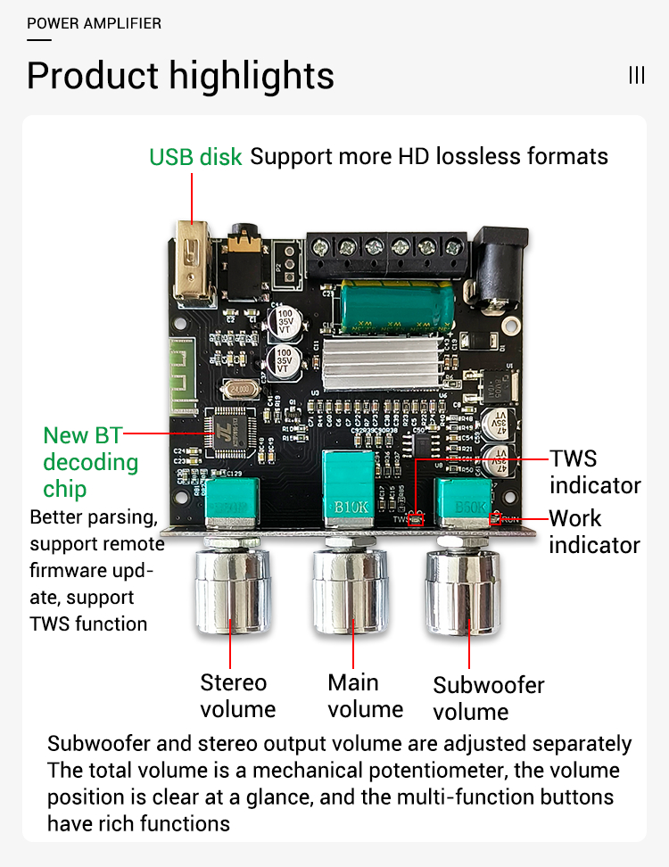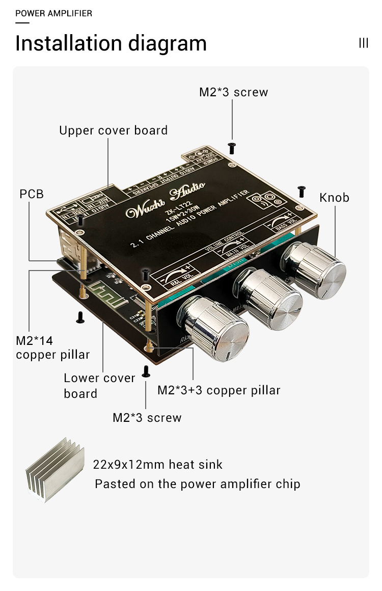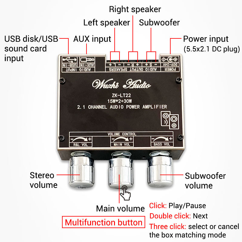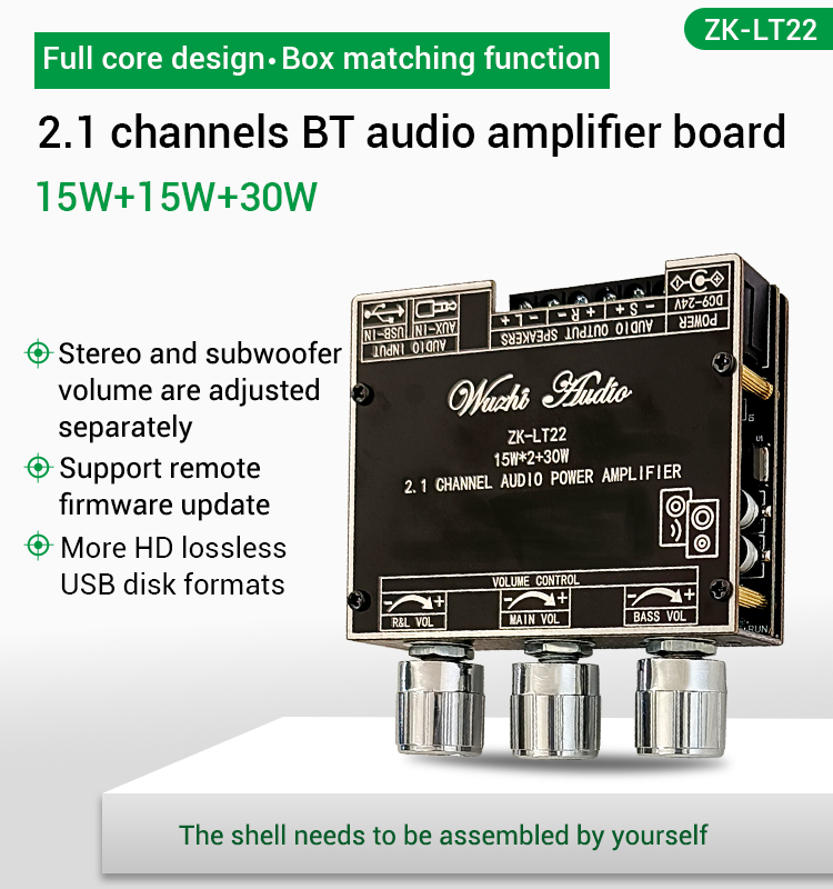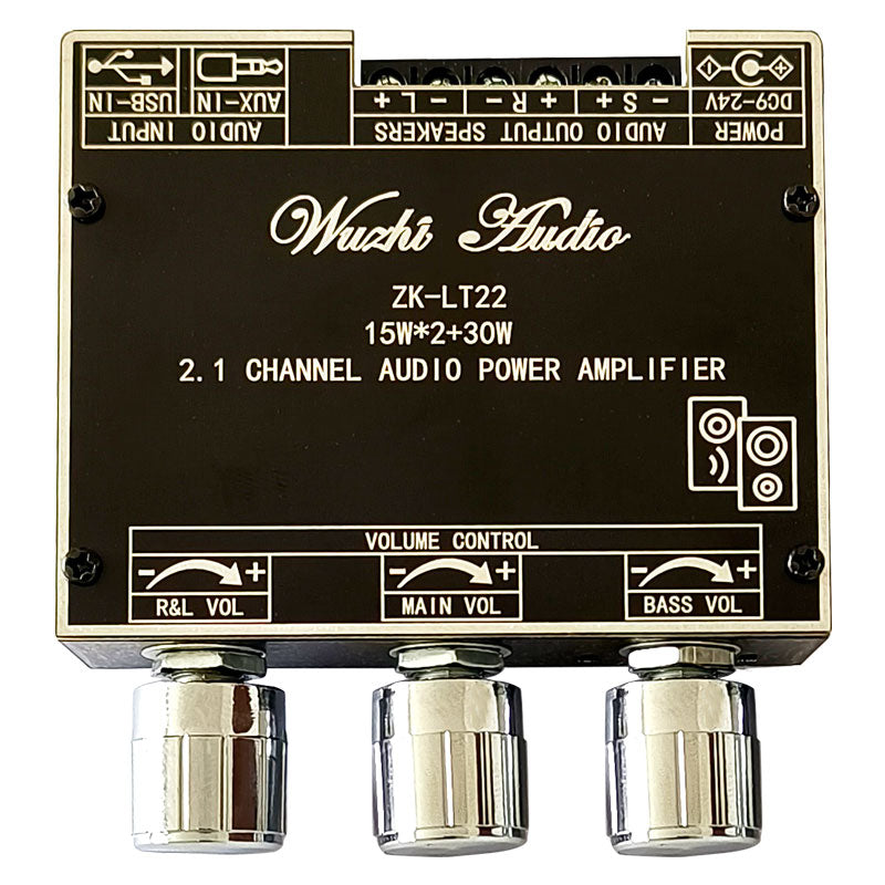 Wuzhi Audio ZK-LT22 2.1 Channel Amplifier 15W+15W+30W Bluetooth Amplifier Module Audio Power Amp TWS