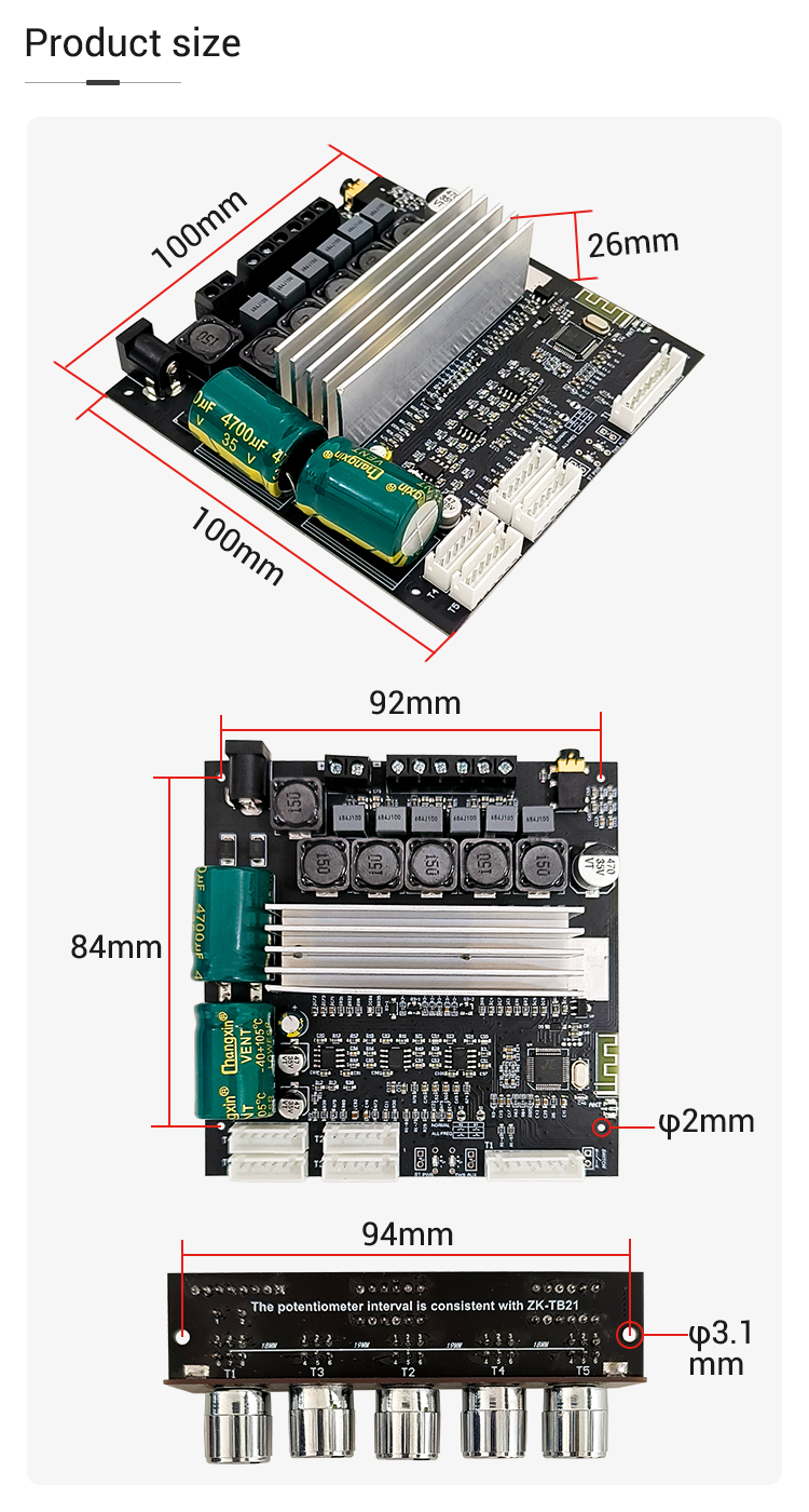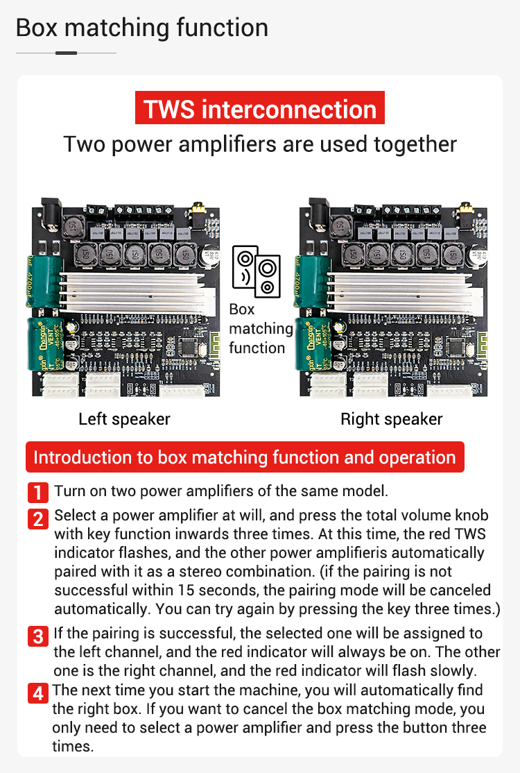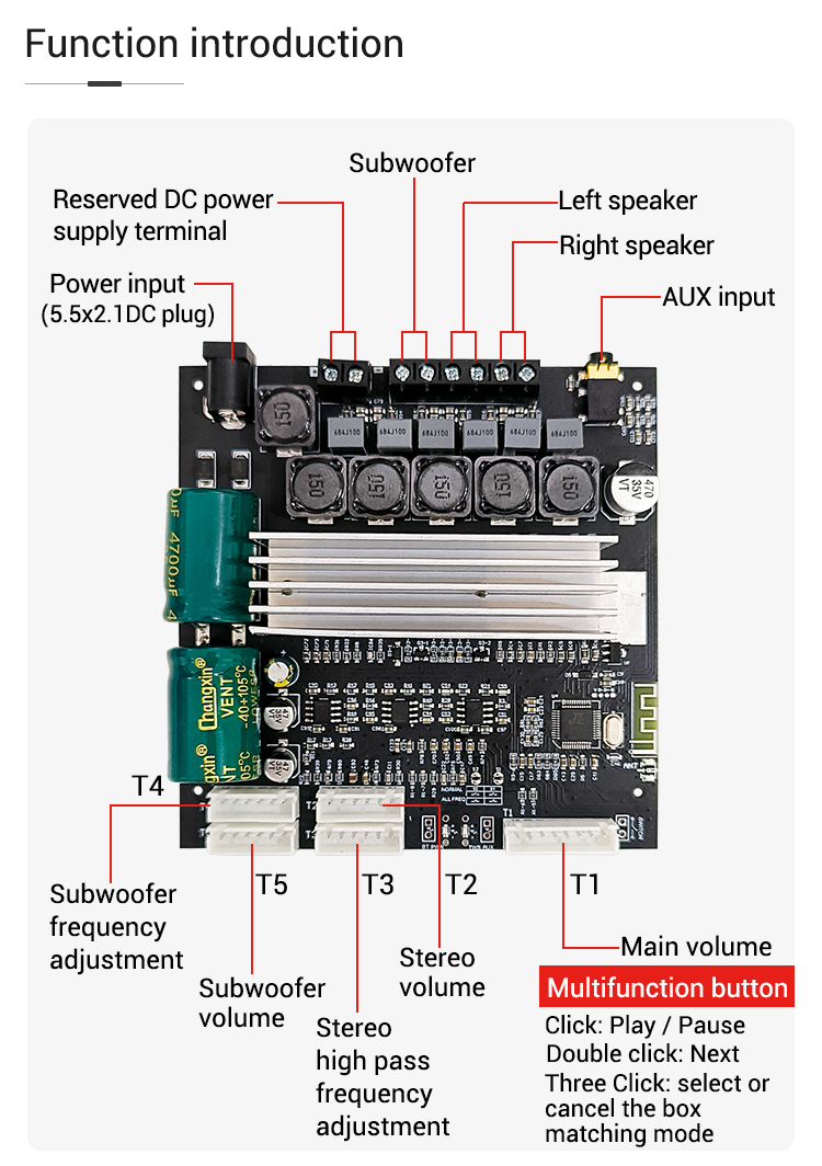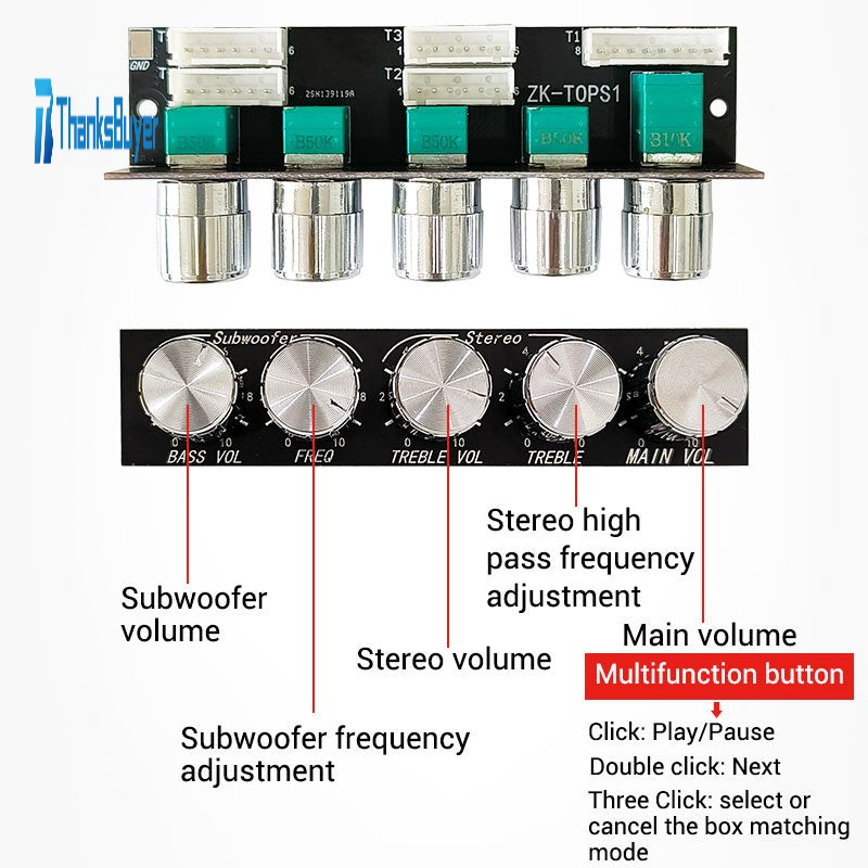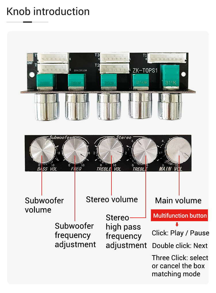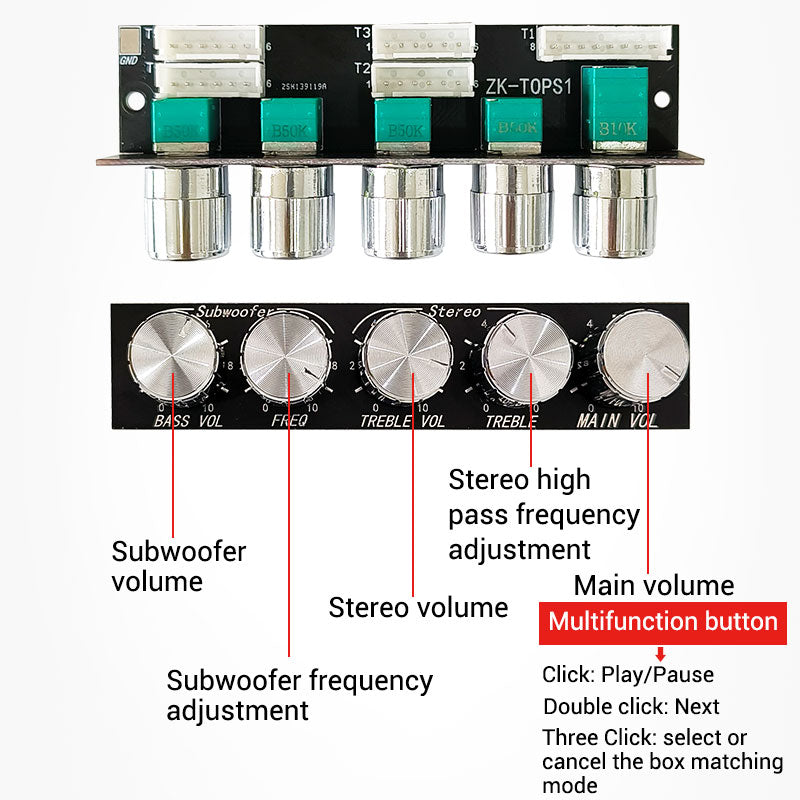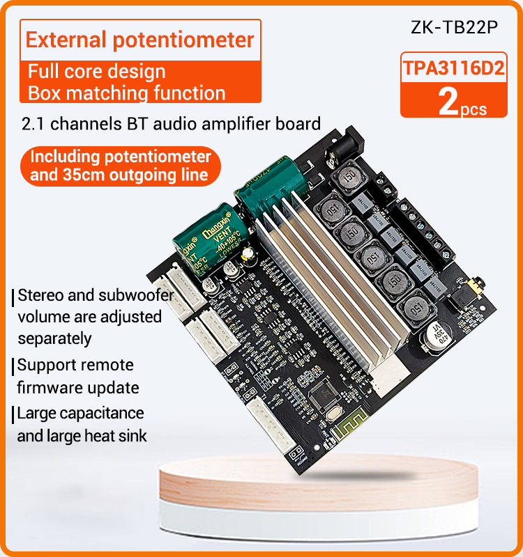 Wuzhi Audio ZK-TB22P 2.1 Channel Amplifier TWS Bluetooth Power Amp TPA3116 (Integrated Potentiometer)