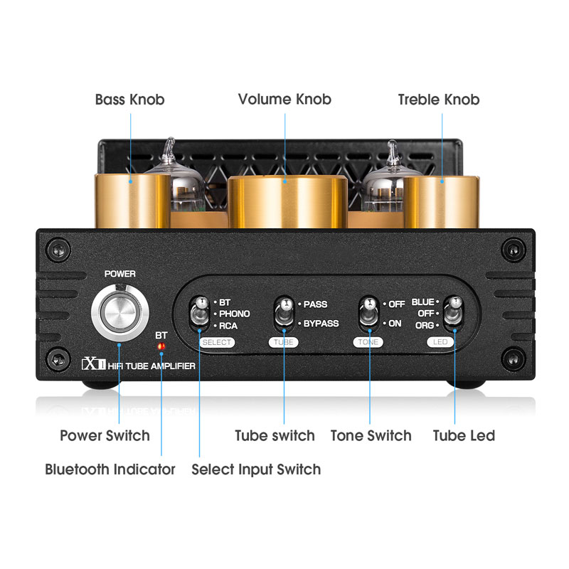 - Perfect Design & Powerful function: With tone control, easy to get more smooth and delicate sound by adjusting treble and bass knob, and bypass function is added to enjoy original sound. Vacuum tube circuit can be also bypassed, easy to compare the difference digital sound and tube sound, adding much fun and higher playability