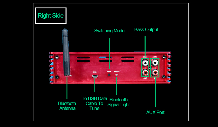 - A variety of audio input methods. Bluetooth listening to music, AUX listening to music, easy to solve the problem of the audio source. Support music players, MP3, MP4, mobile phones and tablets