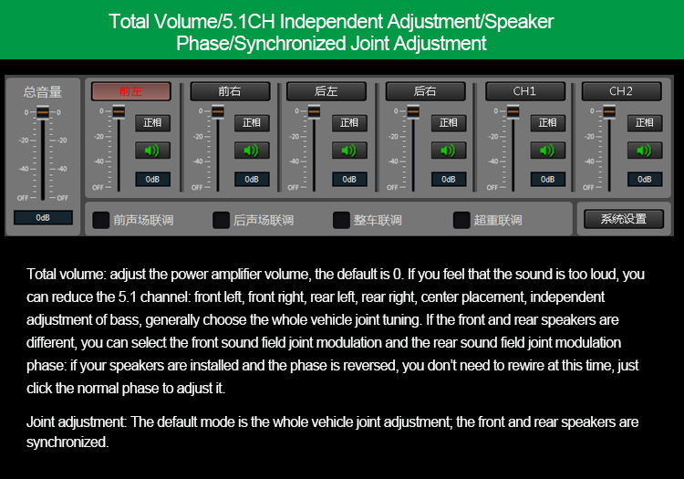 - High power, non-destructive installation, multiple safety protection, 31-segment DSP tuning