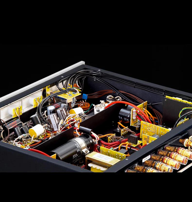 - Two Japanese EI-type output transformers with high quality broadband response and high sound quality are adopted.