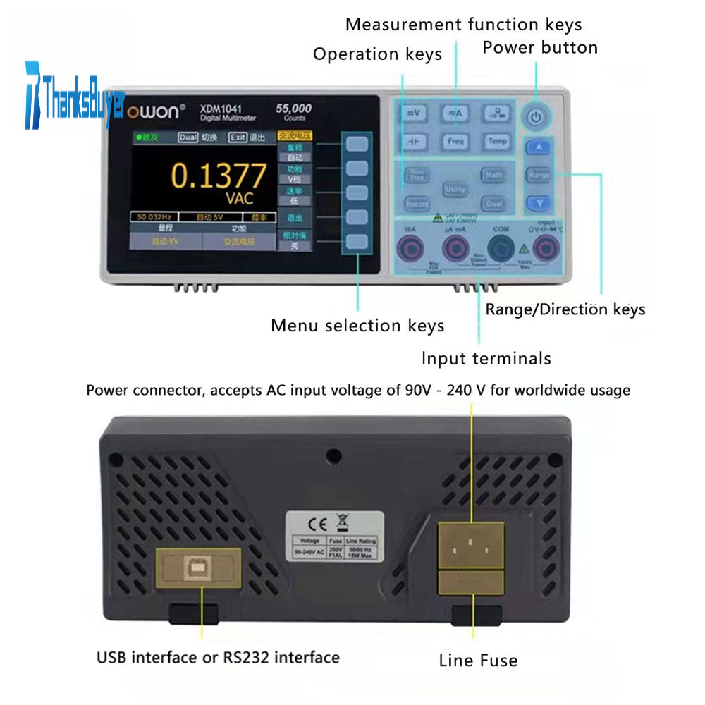 XDM1041 Digital Multimeter 55000 Counts High-Accuracy Desktop Multimeter TRMS AC/DC Tester Voltmeter