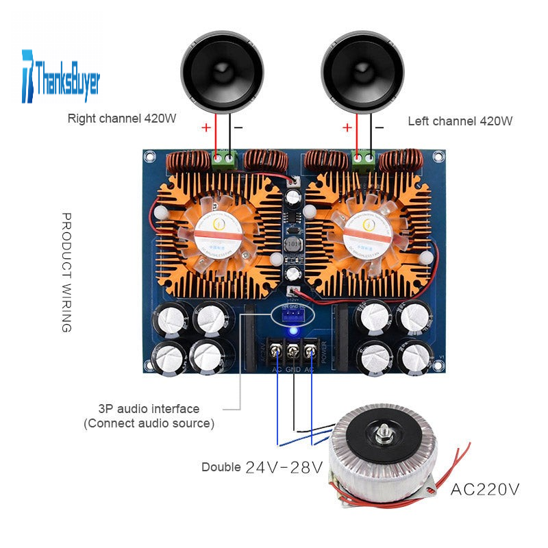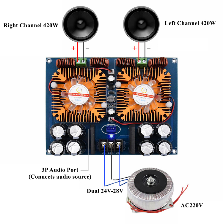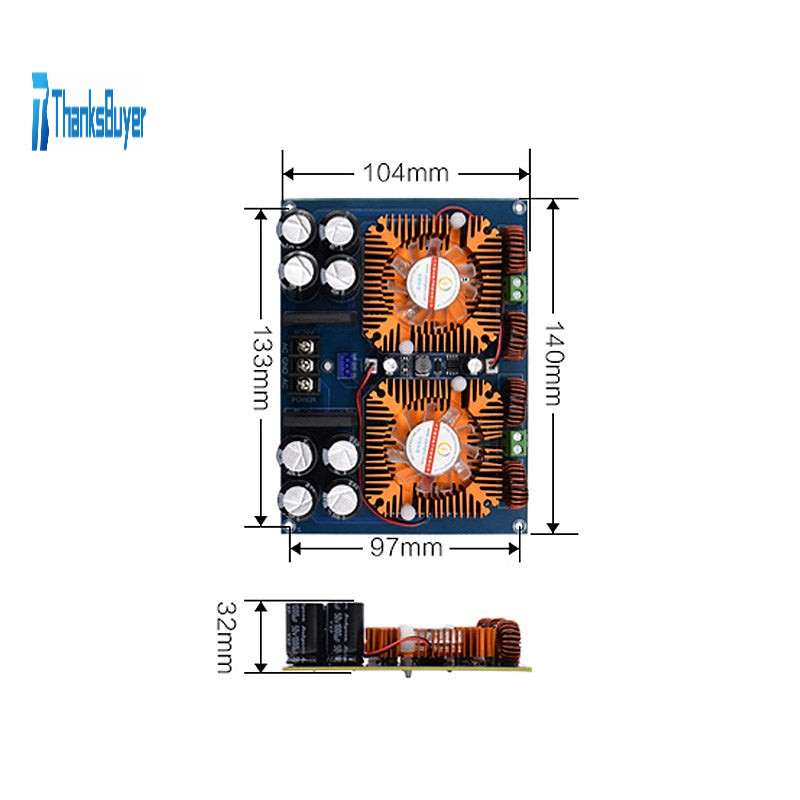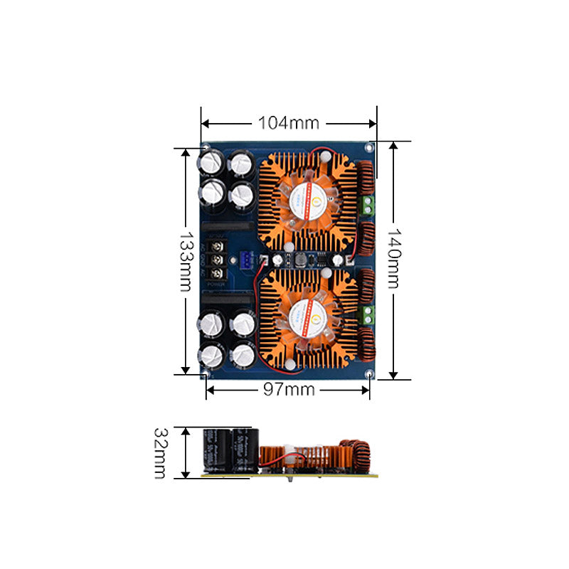 The power amplifier board uses a new and original TDA8954TH chip. When the chip is in AD working state, it has both the sleek sound quality of analog power amplifier and the high efficiency of digital power amp. Each channel adopts an independent chip, and the output power in BTL mode can reach 420W. The heat dissipation of fan makes the temperature of the power amplifier well controlled. As an amplifier, it is your perfect choice.