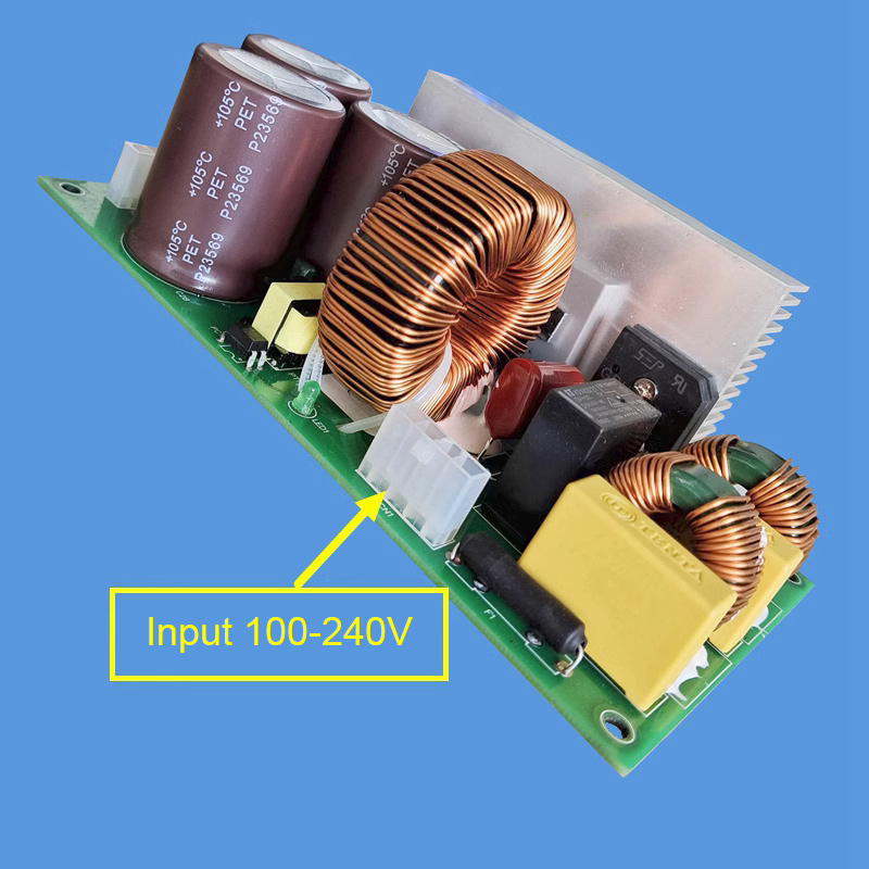 - Rated power: 1500W (at 220V input). 60% derating at 110V input. Forced air cooling according to the ambient temperature of use