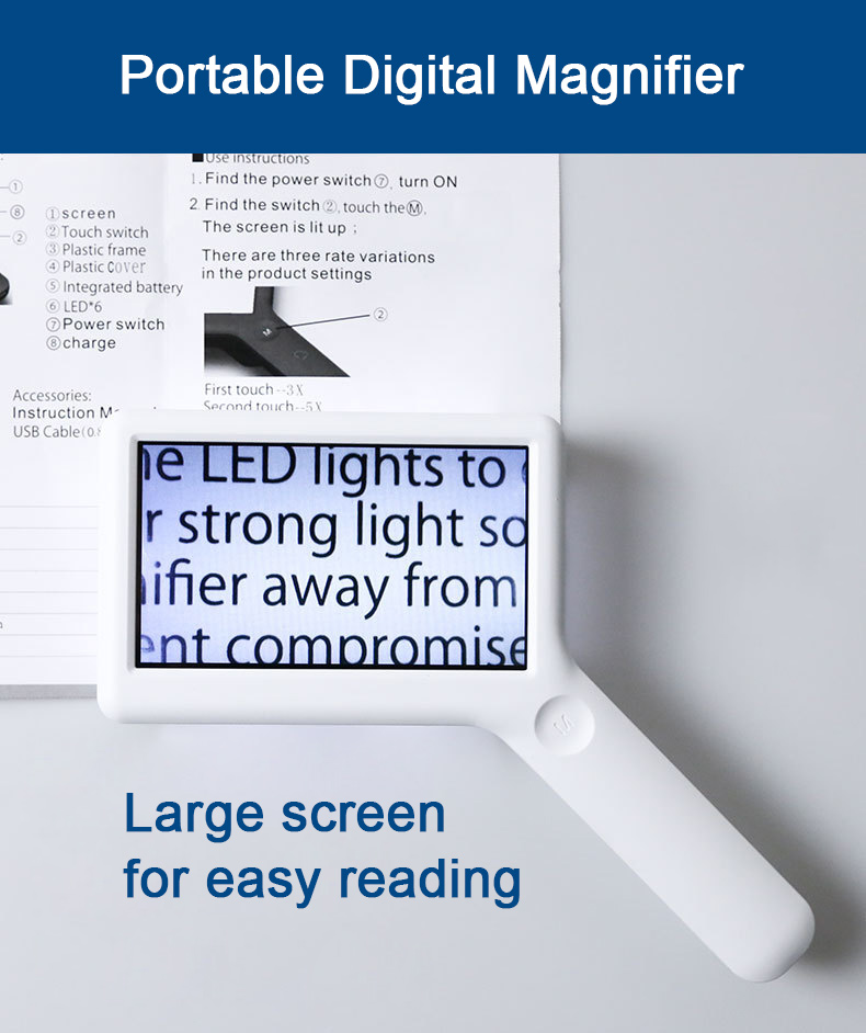 XT-8686 3X/5X/10X HD Portable Digital Magnifier Video Magnifier w/ Large Screen Designed for Reading