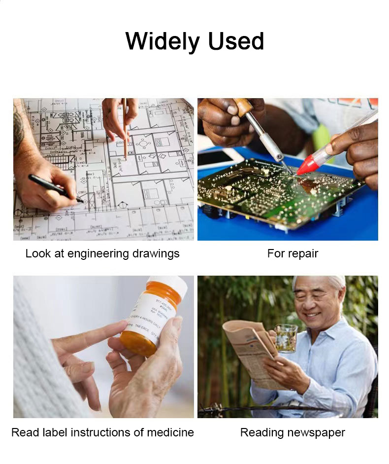 - Widely used: The professional-grade magnifier can be used to look at engineering drawings, repair, read label instructions of medicine and newspaper, etc.