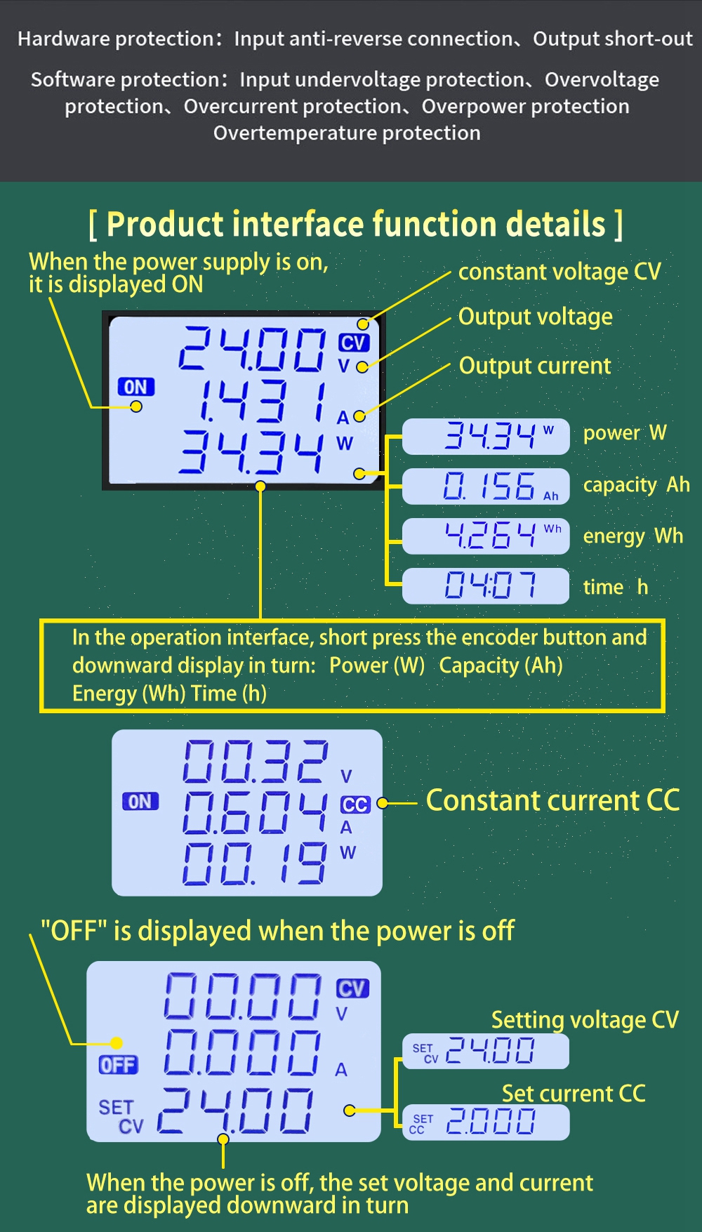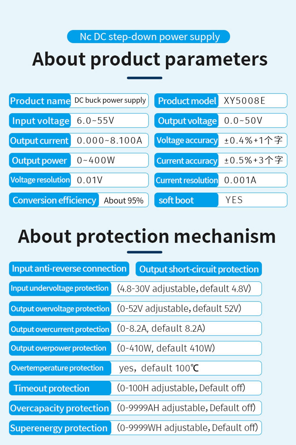 XY5008E Digital Control Adjustable DC Constant Voltage and Current DC Buck Power Supply Module 50V/8A 400W