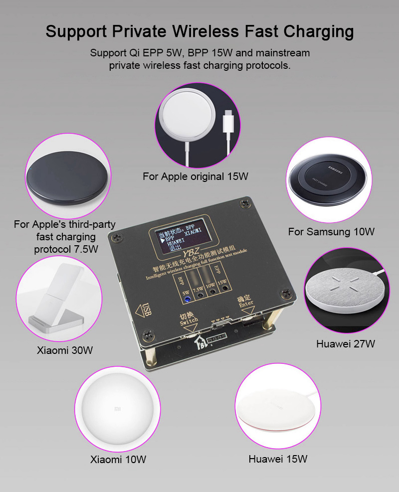 - It supports EPP 15W wireless charging test, and is compatible with 10W, 7.5W and 5W.