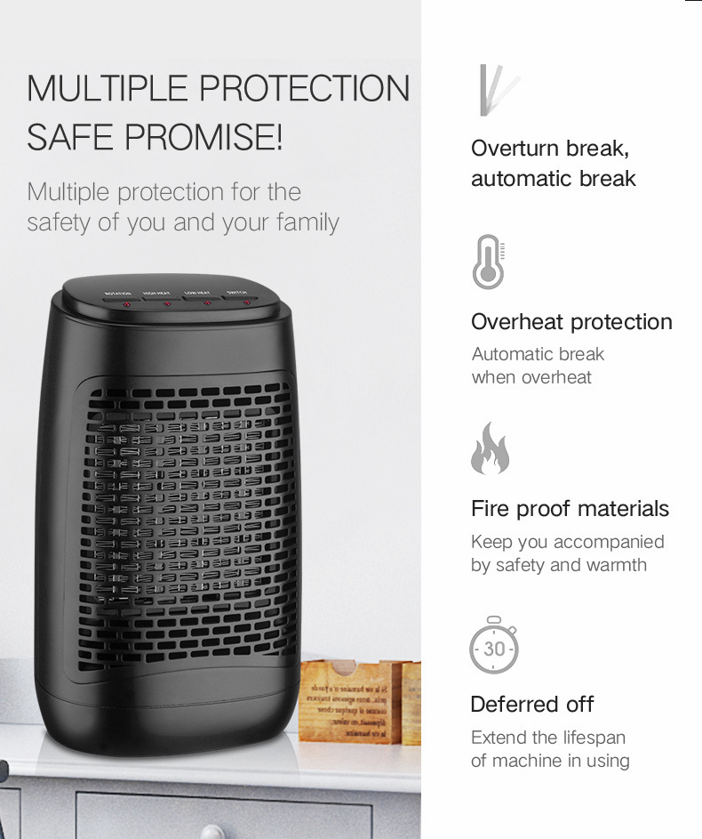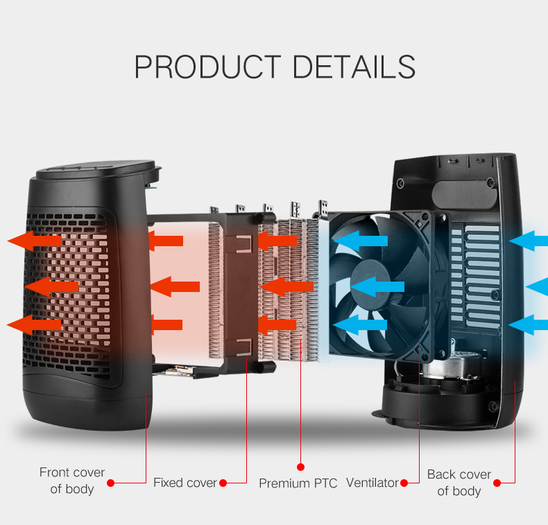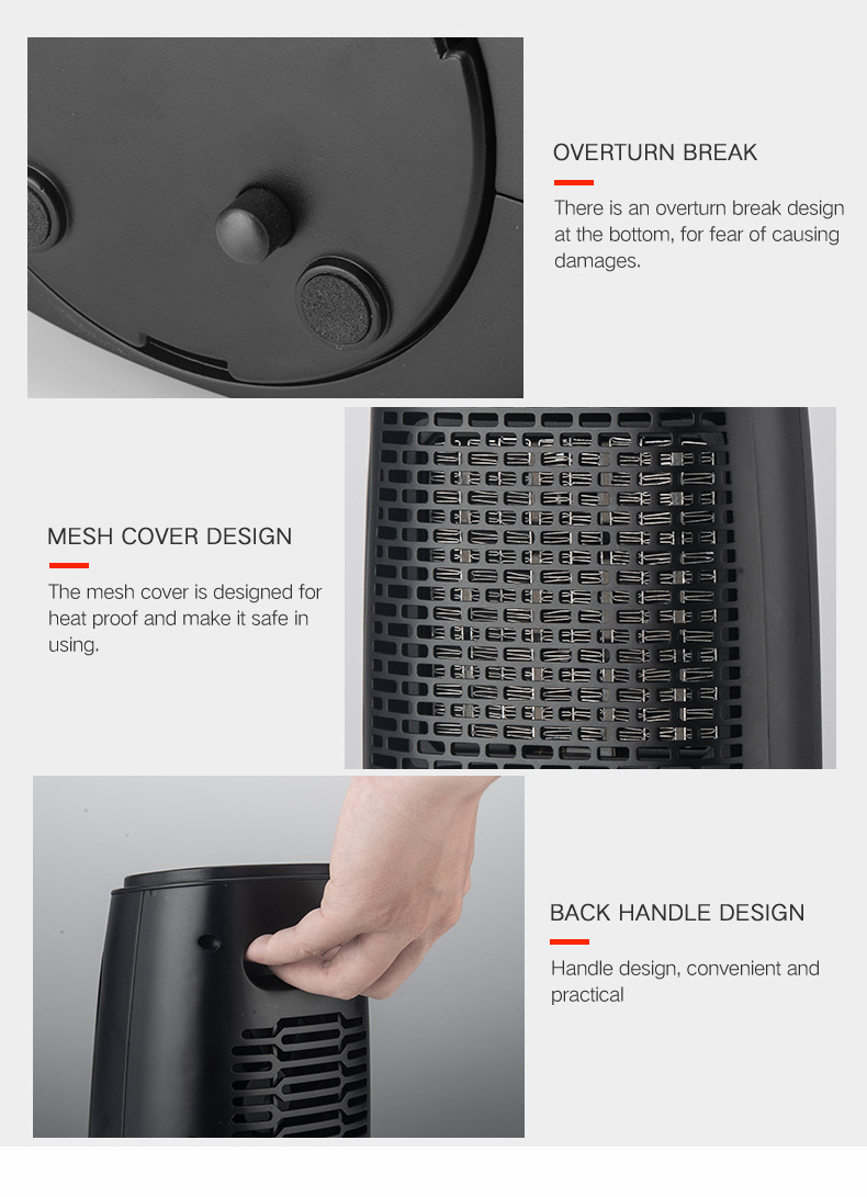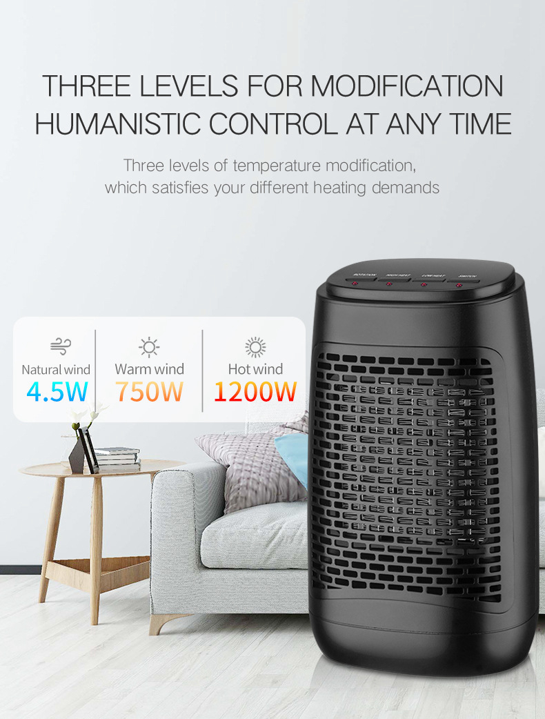 YND-1200S Household PTC Ceramic Heater Fan 1200W Mini Space Heater With Rotation Function Buttons
