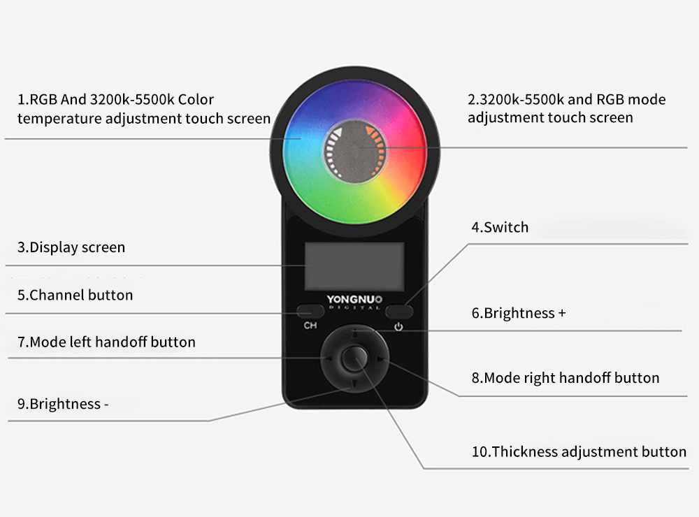 Color Temperature: 3200K,5500K and RGB full color