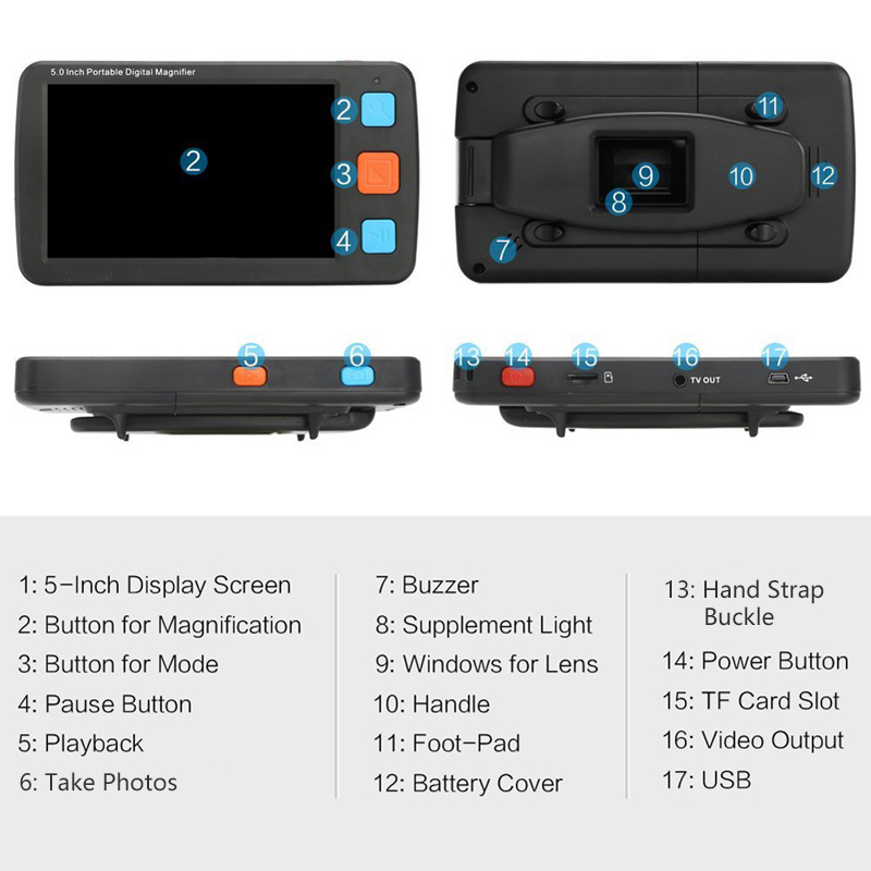 YS011 4-32X 5.0 Inch Portable Digital Magnifier for Senior Citizens and Visually Impaired Persons