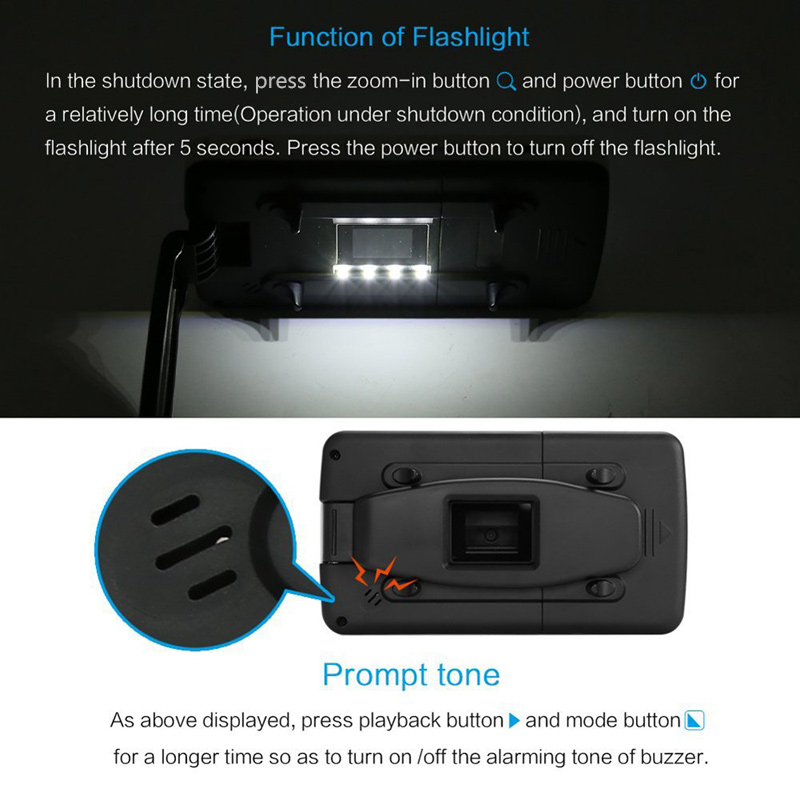 12. TF card can be inserted (up to 32GB) for taking pictures and playback