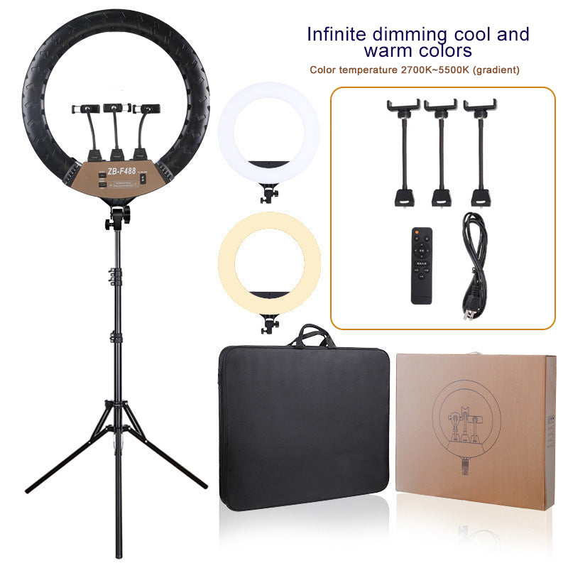 ZB-F488 22" Ring Fill Light Dimmable Ring Light w/ Stand Phone Clips For Vlog Live Broadcast Selfie