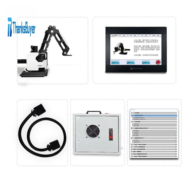 The programming function is less than that of large industrial robots, and only from programming and learning the use of robots can be used as introductory teaching training. Drawing lessons from the use habits, programming habits, and programming ideas of large industrial robots, it can be used for palletizing, handling, and loading and unloading programming teaching.