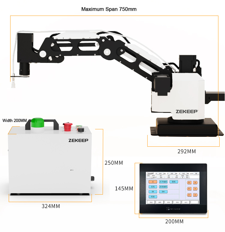 ZEKEEP 4-Axis Industrial Robot Arm Desktop Mechanical Arm 2KG Palletizing Handling Loading Unloading