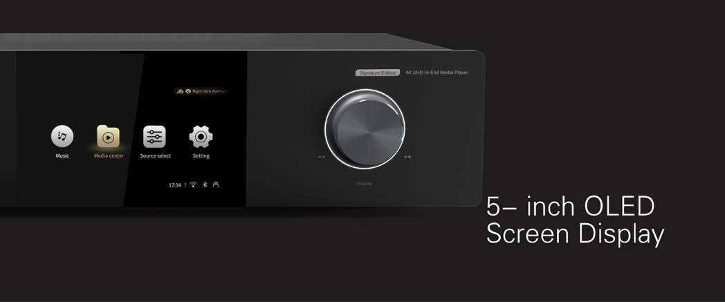 - 5-inch OLED high-definition touch screen will display general settings, music playback status and touch control.