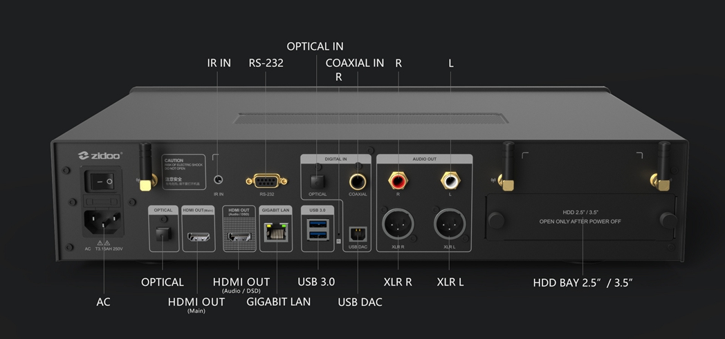 - Dual HDMI audio and video separation output, multi-channel DSD (2.0/5.1CH) playback and DSD Native output.