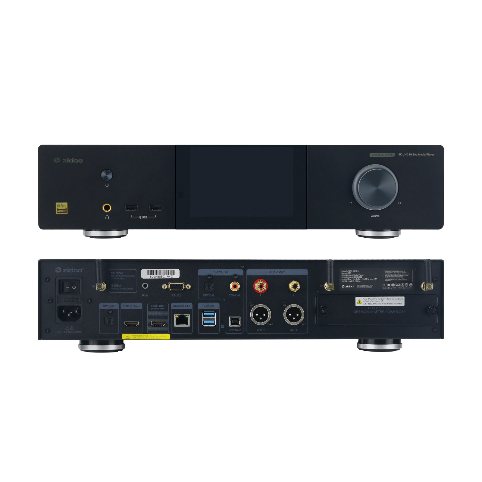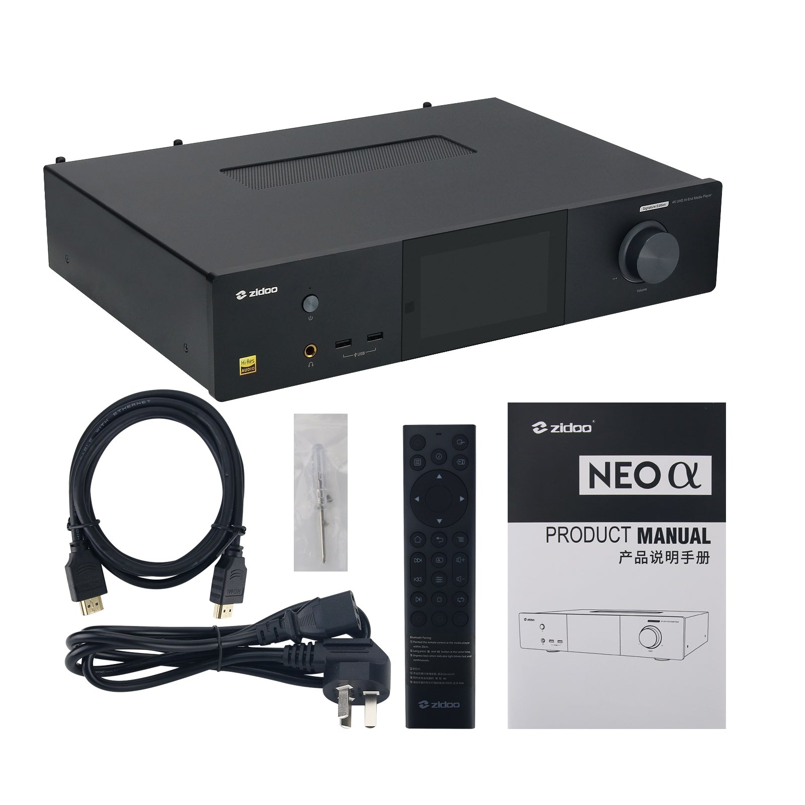 - NEO α(Alpha) Signature Edition is the flagship of ZIDOO in 2022, it converges years of technologies and brings refreshingly ultimate audio visual experiences for enthusiasts 430 standard dimension, all-aluminum thickened chassis and silent passive heat dissipation 5-inch OLED touch screen, 4G DDR4 RAM and 32G eMMC storage, 512G internal SSD ESS9038 Pro DAC, low noise and dual power supplies(linear power supply and digital power supply). Dual HDMI audio video separation, supporting DSD Native 5.1 (HDMI Audio/DSD port). NEO α(Alpha) is an all-in-one solution for HiFi player, DSD multichannel digital player.