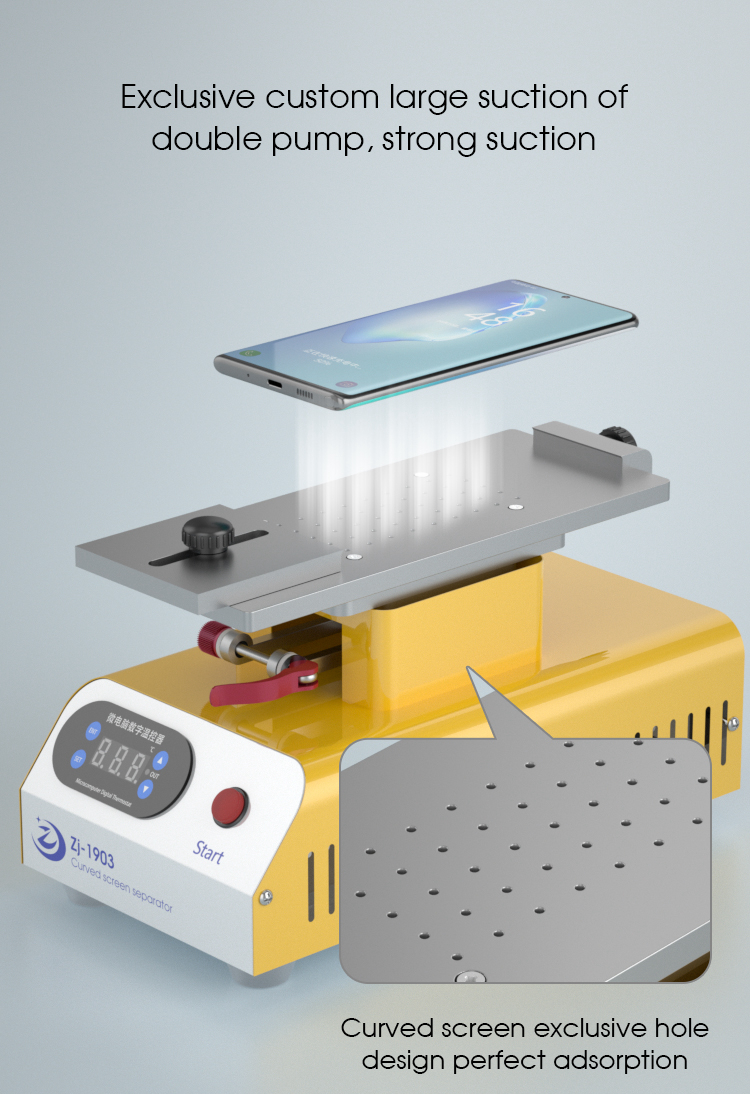 360-degree LCD separator features large suction power, light weight, 360-degree rotation. It is easy to use, it is a must-have artifact for removing glue from curved screens.