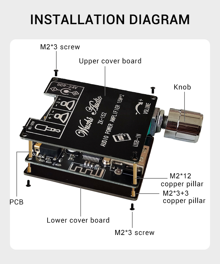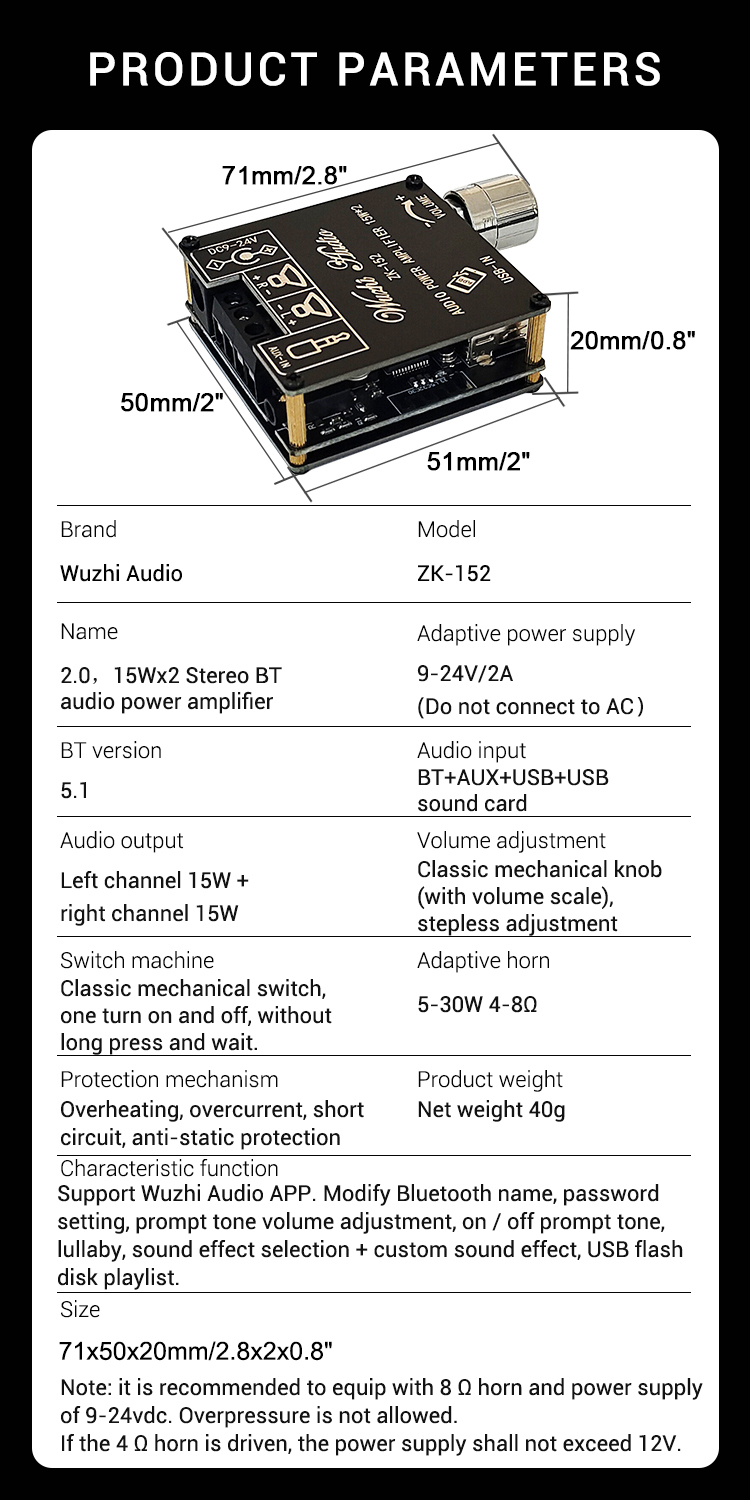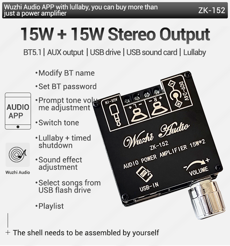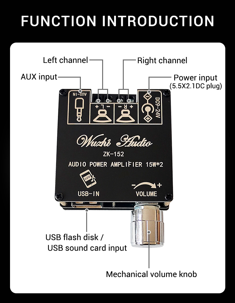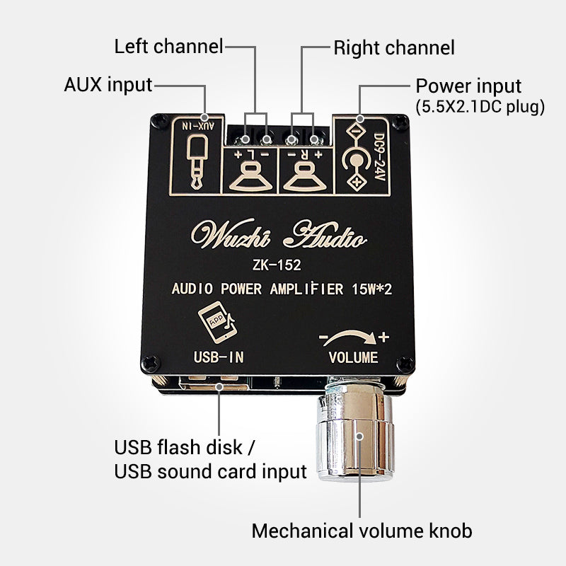 ZK-152 15Wx2 Audio Power Amplifier Stereo Amplifier Module Bluetooth Digital Power Amp Board