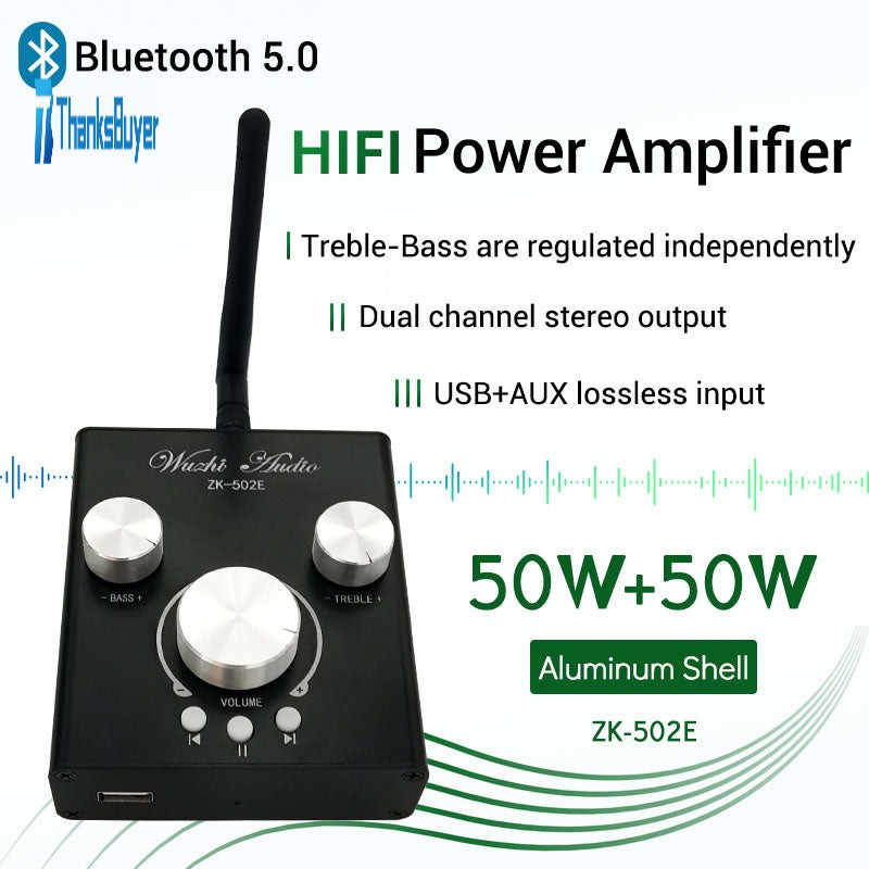 ZK-502E Bluetooth 5.0 Amplifier 50W*2 Hifi Stereo Amp 2 Channel Amplifier With Bass Treble Knobs