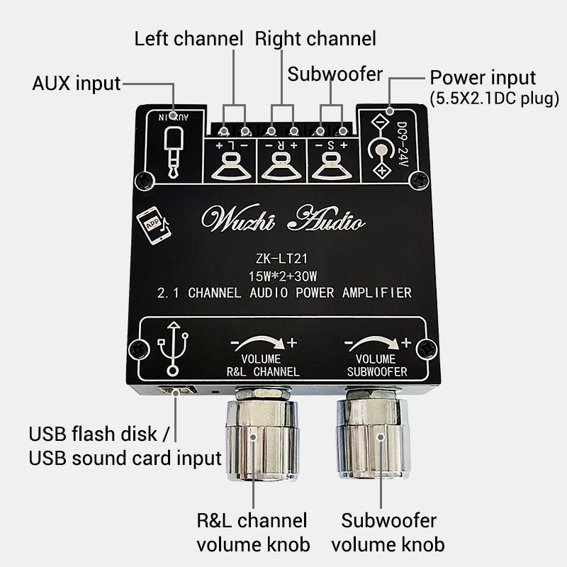 ZK-LT21 Bluetooth Amplifier Board 15W+15W+ 30W 2.1-Channel Amplifier Board Power Amp w/ Subwoofer