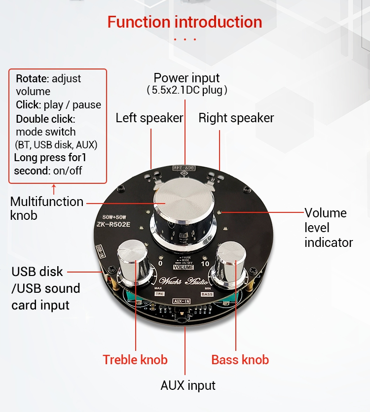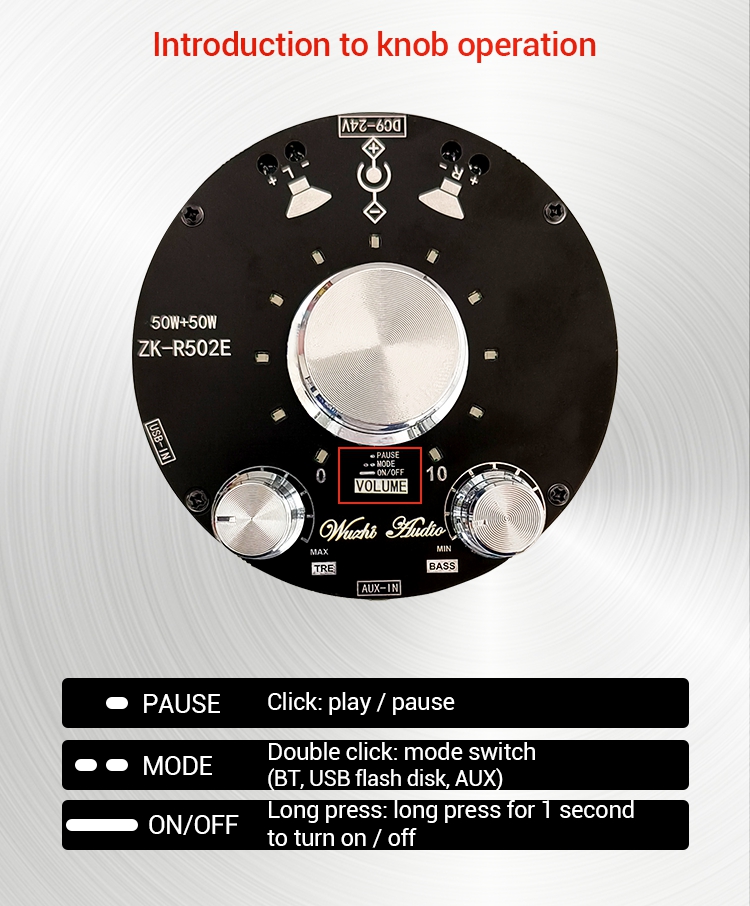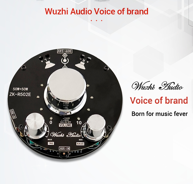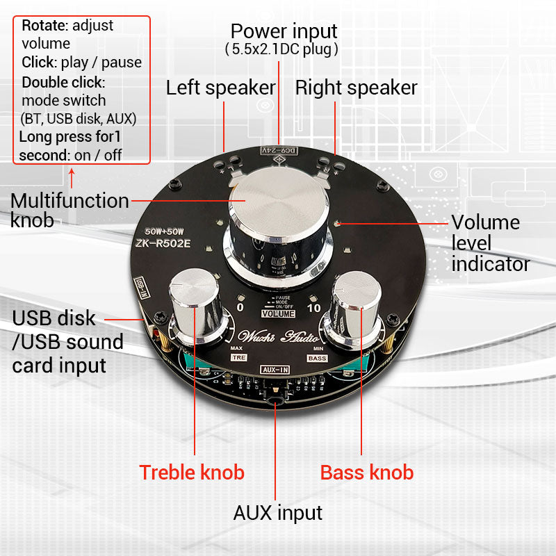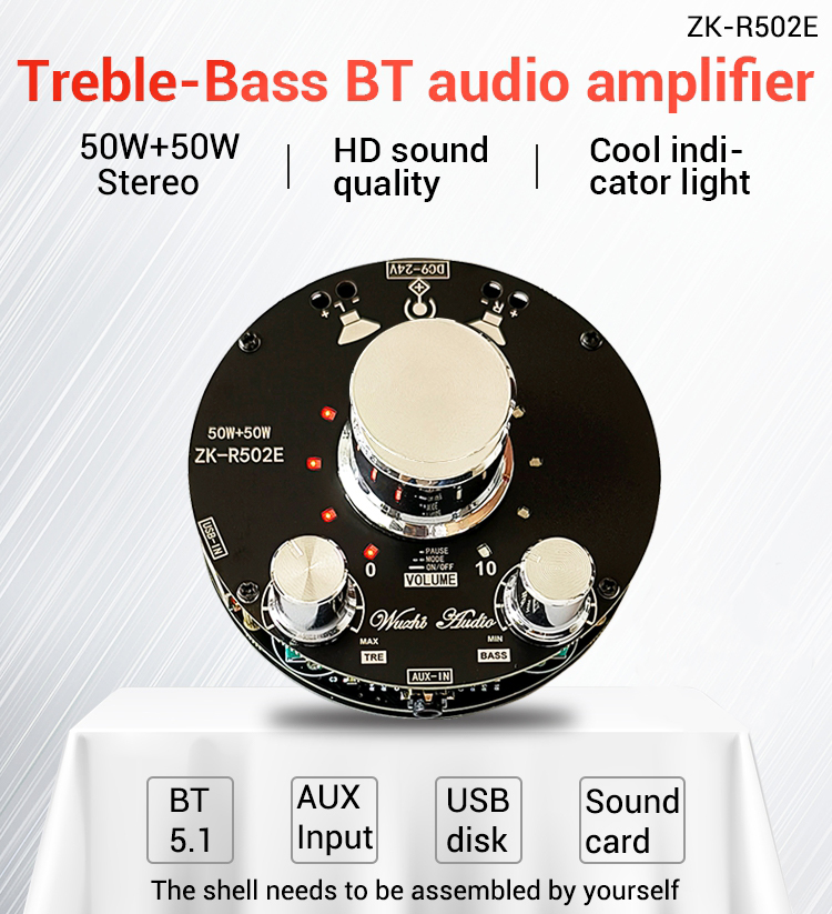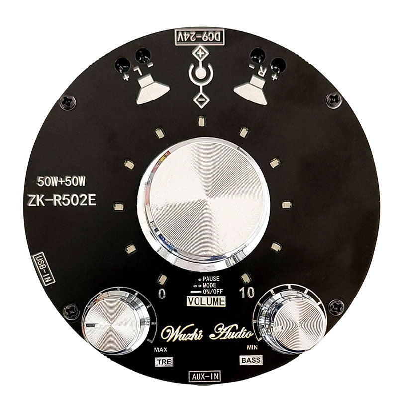 ZK-R502E 50W+50W Bluetooth Amplifier Board Power Amp Board with Volume Indication Bass Treble Knobs