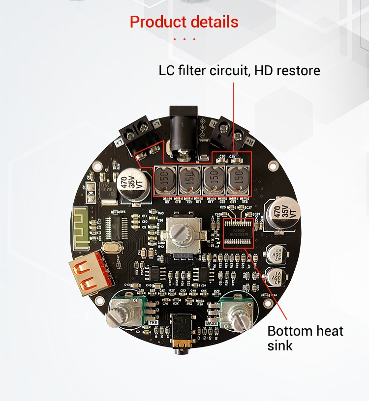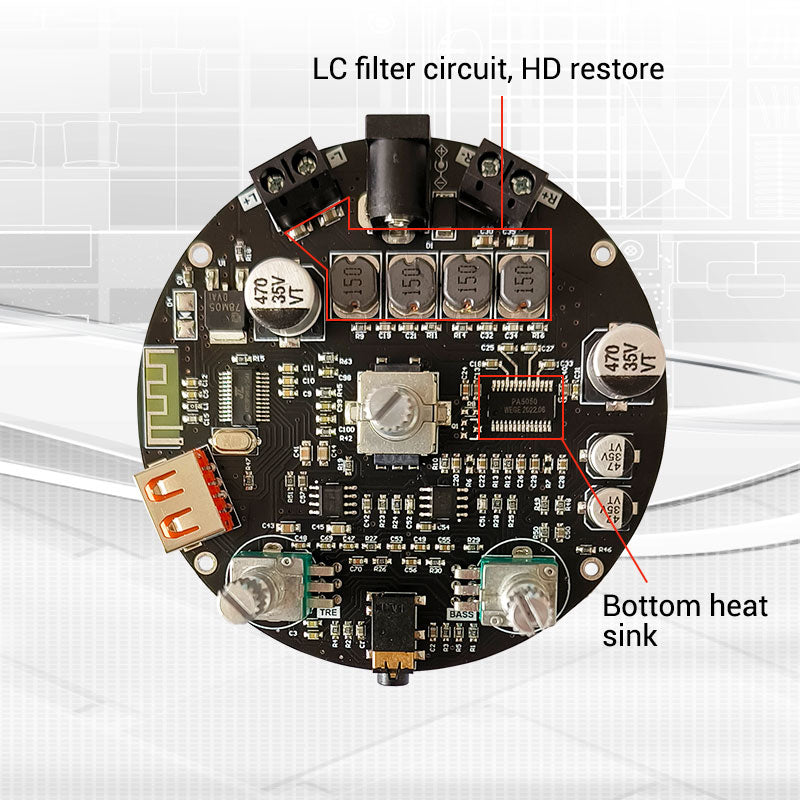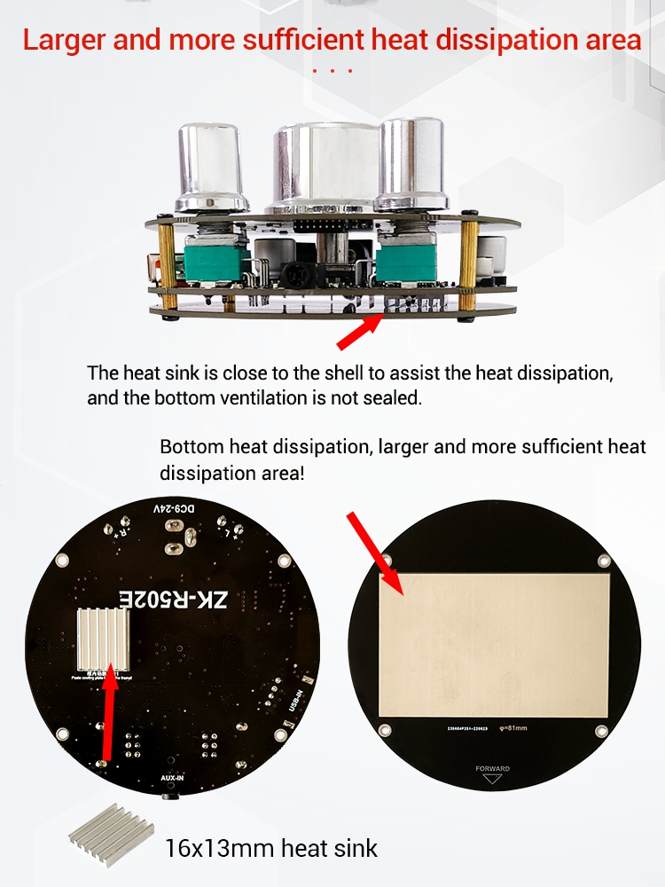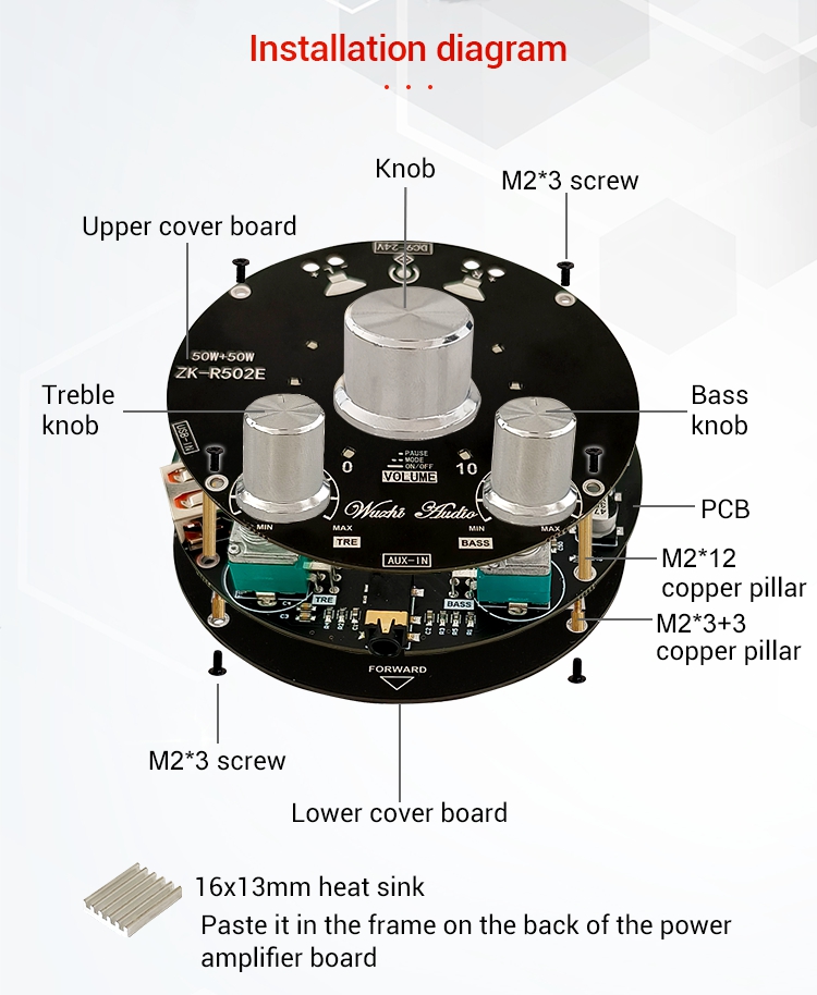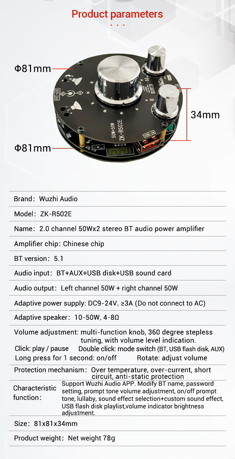ZK-R502E 50W+50W Bluetooth Amplifier Board Power Amp Board with Volume Indication Bass Treble Knobs