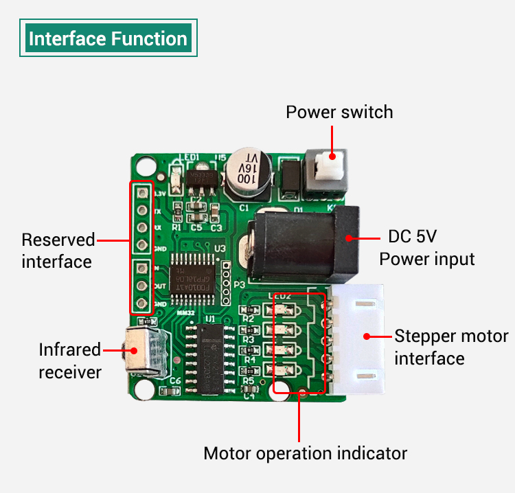- Applicable motor: 28BYJ-48 DC5V 4-phase 5-wire stepping motor