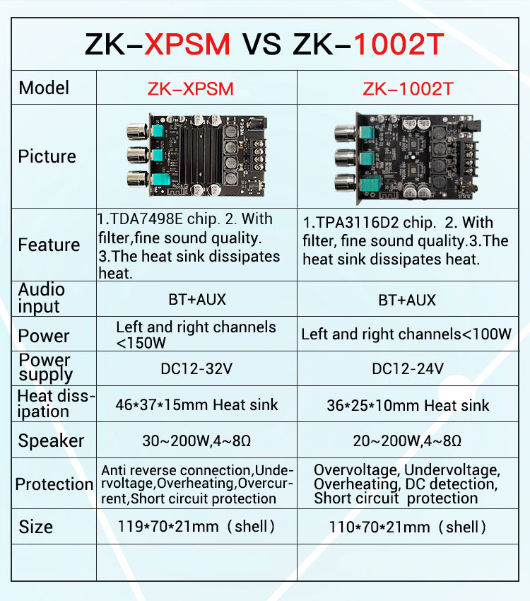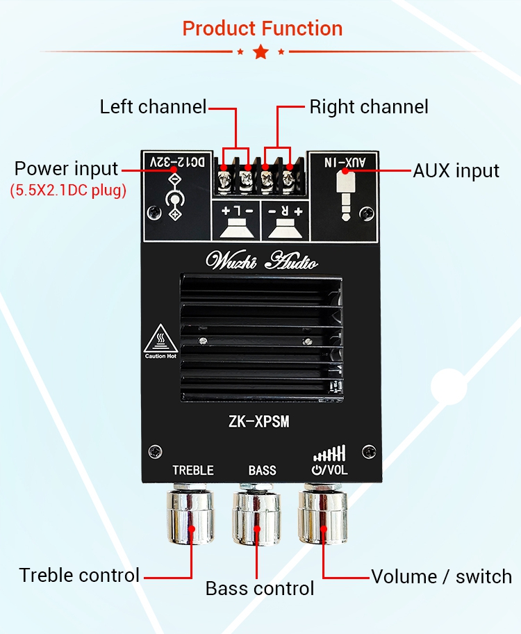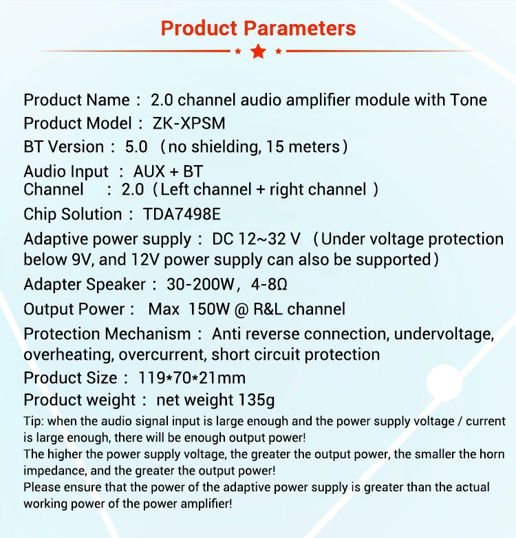 ZK-XPSM Stereo Bluetooth Amplifier Module 150W*2 Bluetooth 5.0 Amplifier Board Adjusts Treble Bass