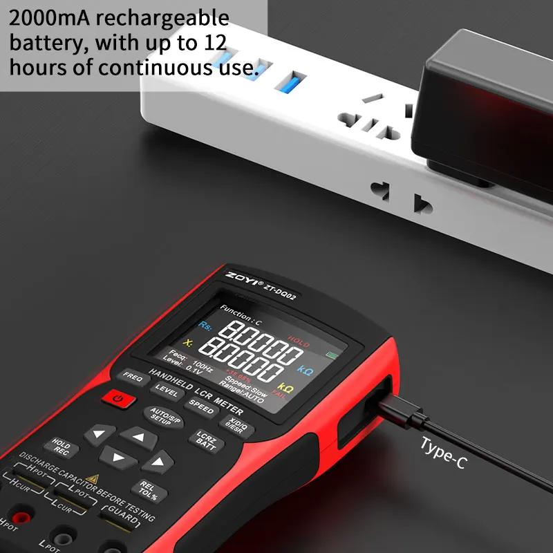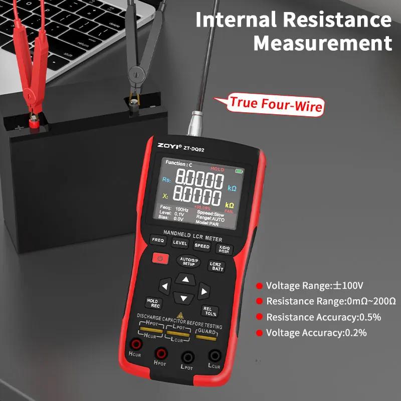 ZT-DQ02 2-IN-1 High Precision Handheld LCR Meter Digital Bridge Battery Internal Resistance Tester with 2 Kelvin Clips