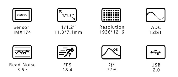 - Sensor: 1/1.2”CMOS IMX174LLJ / IMX174LQJ