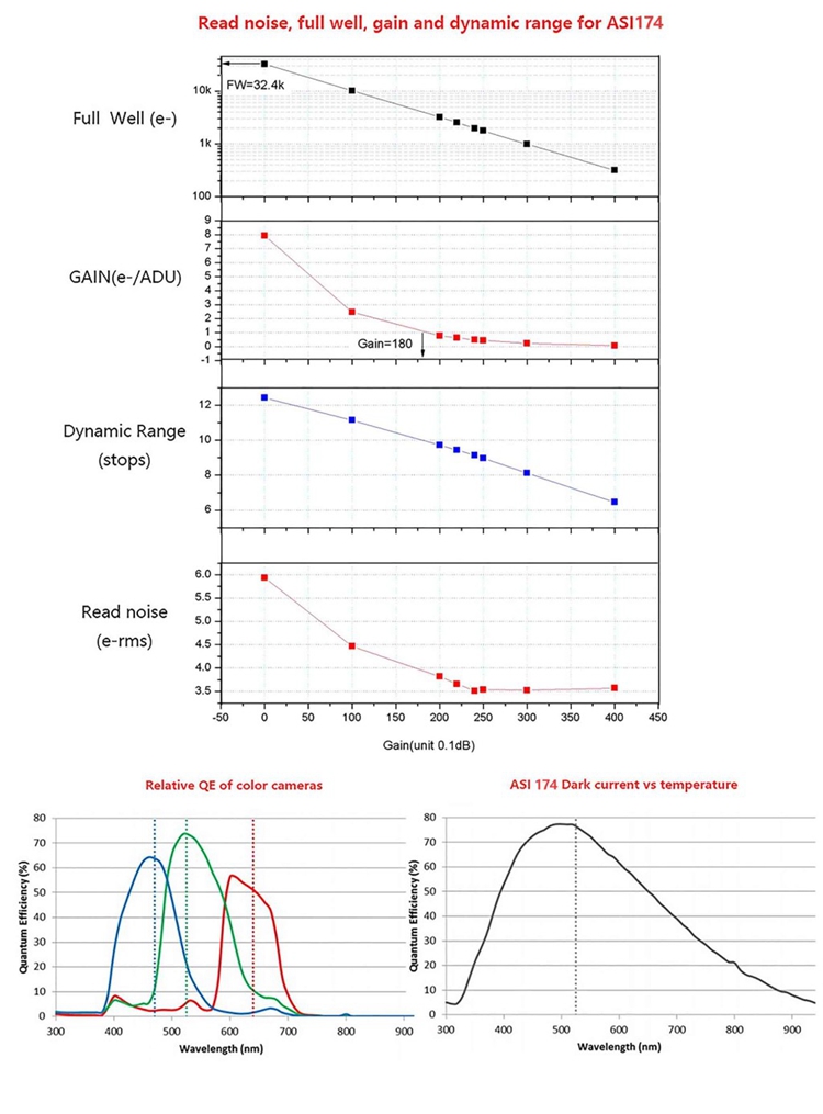 - The ASI174MM Mini camera has a 3.5e readout noise, high dynamic range, global shutter speed, and 77% peak quantum efficiency. It uses AR coated sealed windows, which have strong infrared sensitivity.
