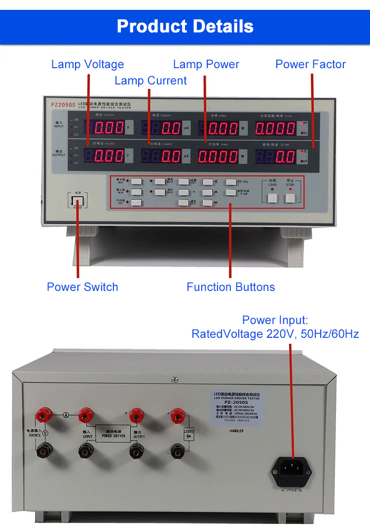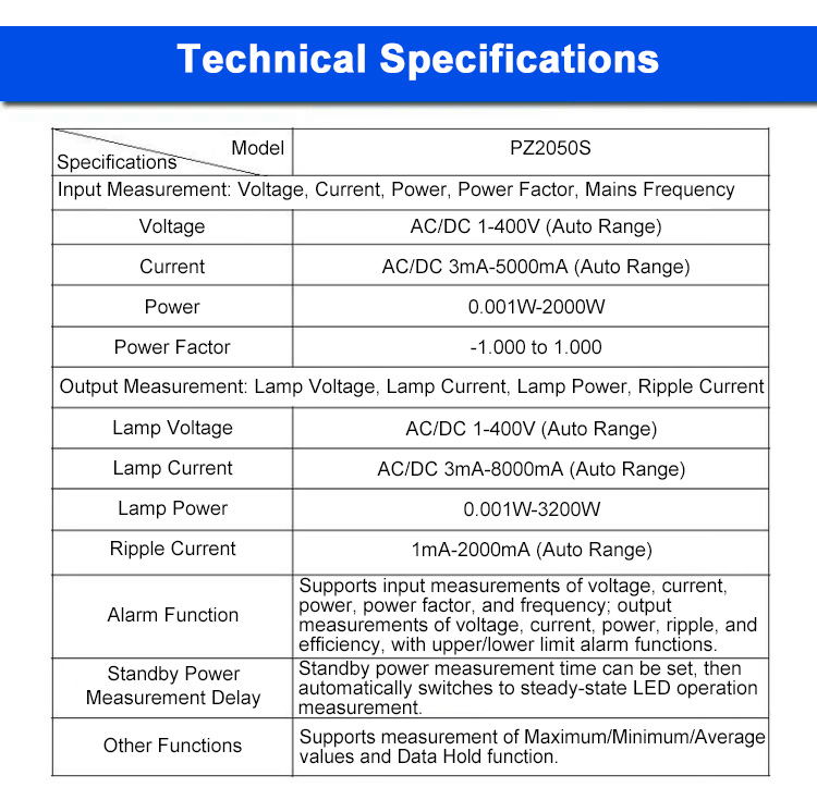 PZ2050S AC/DC 1-400V Comprehensive LED Power Driver Tester Electric Parameter Tester Power Meter