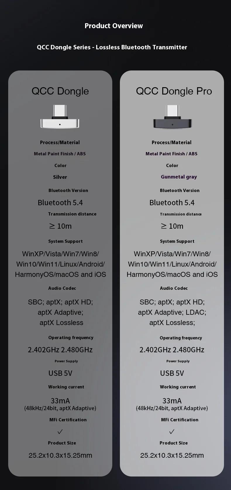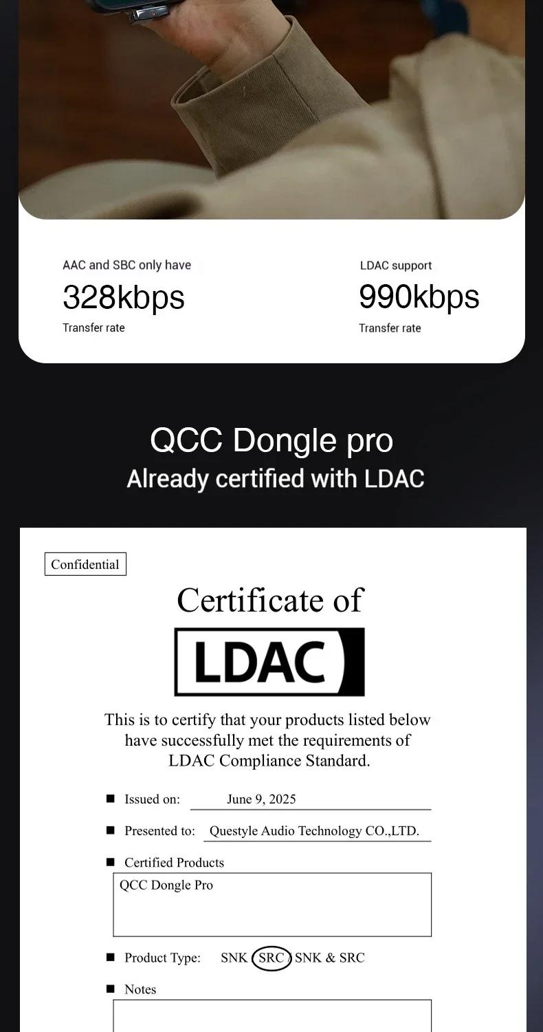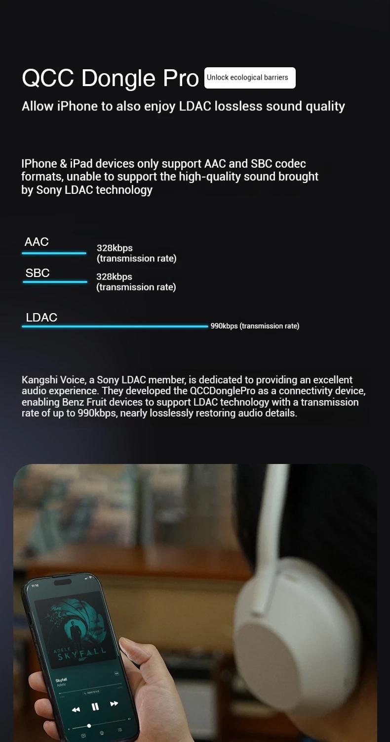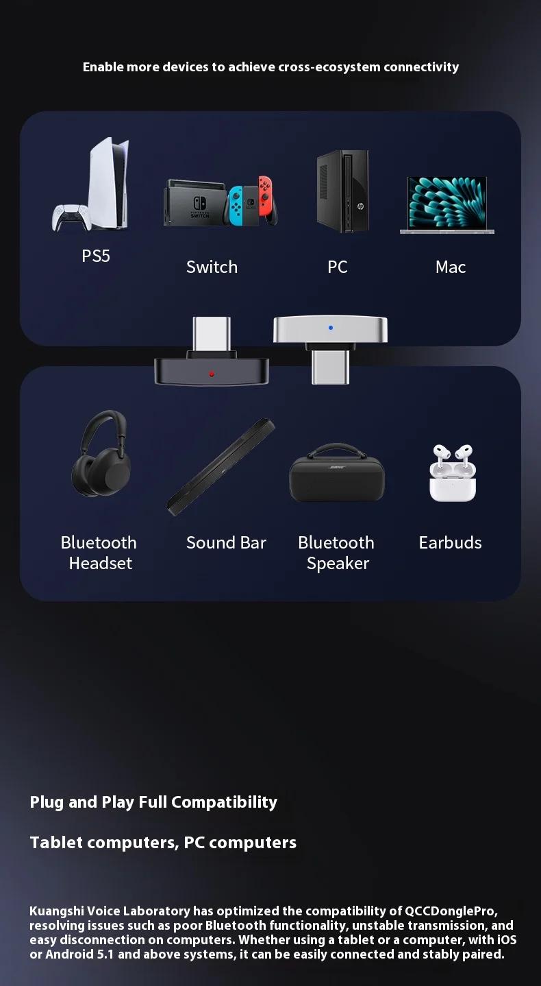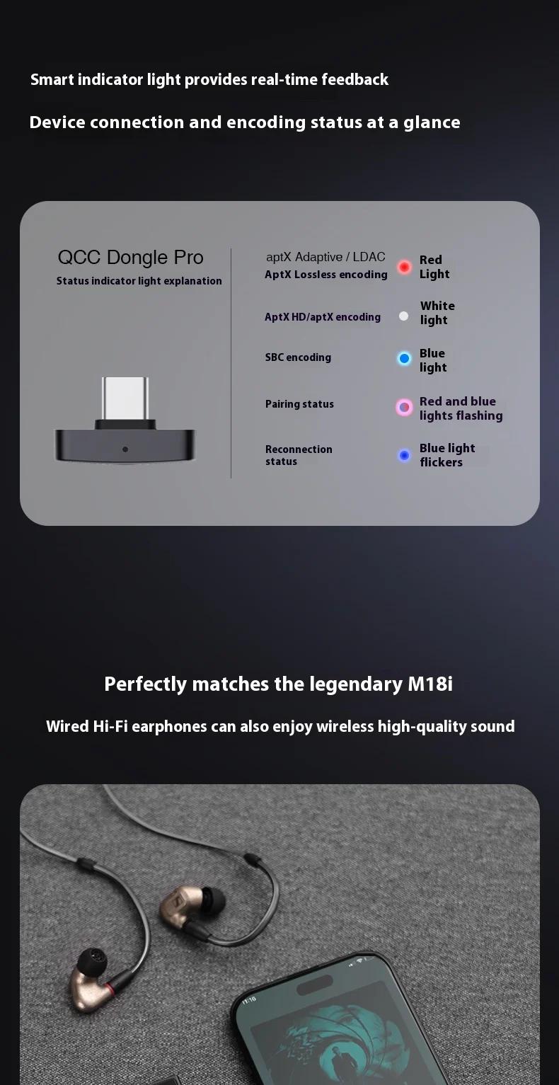 QCC Dongle Pro Lossless LDAC Bluetooth Transmitter HiFi Wireless Transmitter Compatible with iPhone/Android