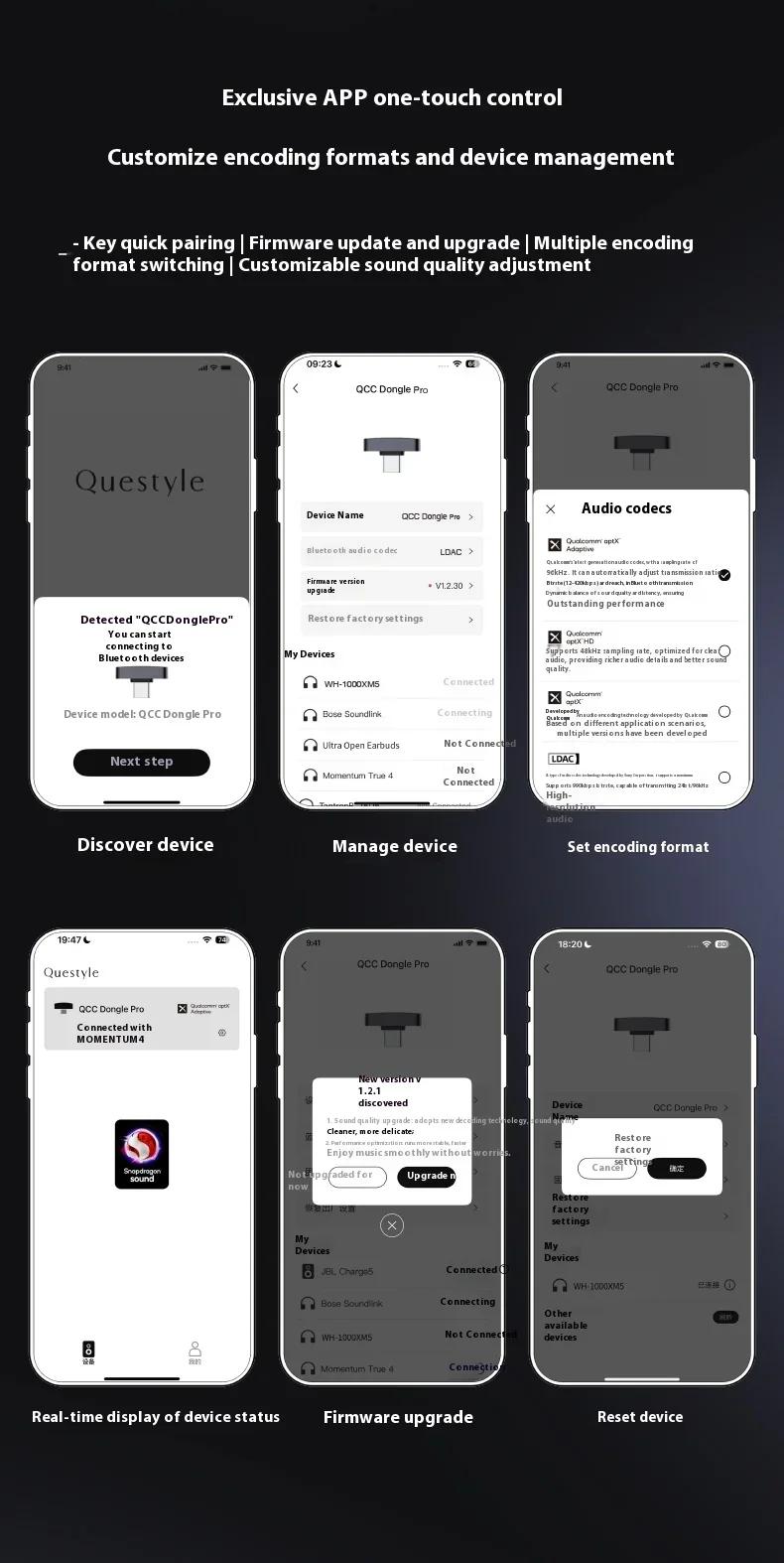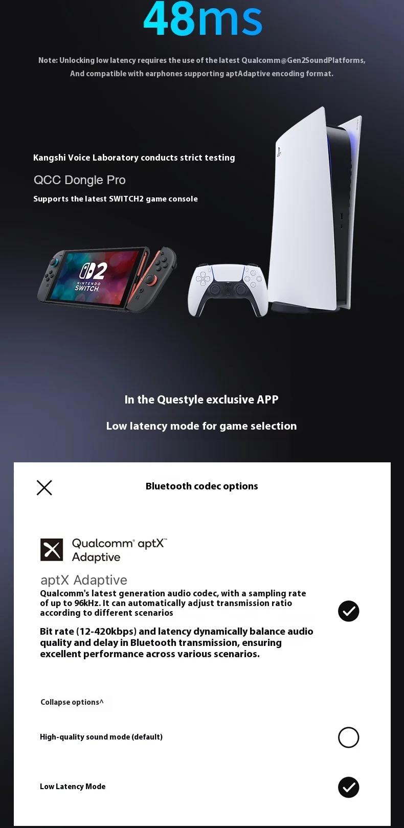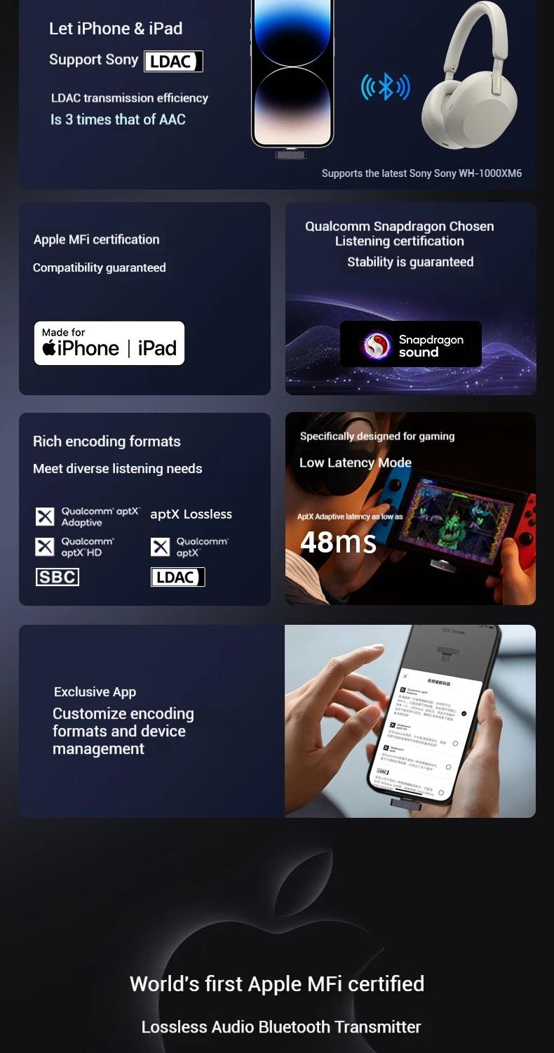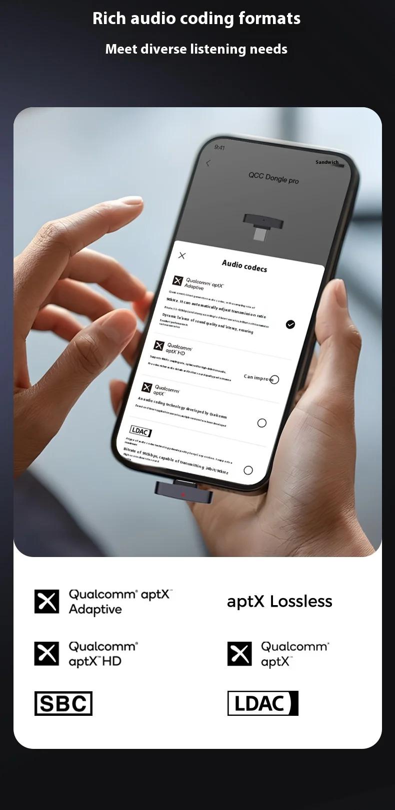 QCC Dongle Pro Lossless LDAC Bluetooth Transmitter HiFi Wireless Transmitter Compatible with iPhone/Android