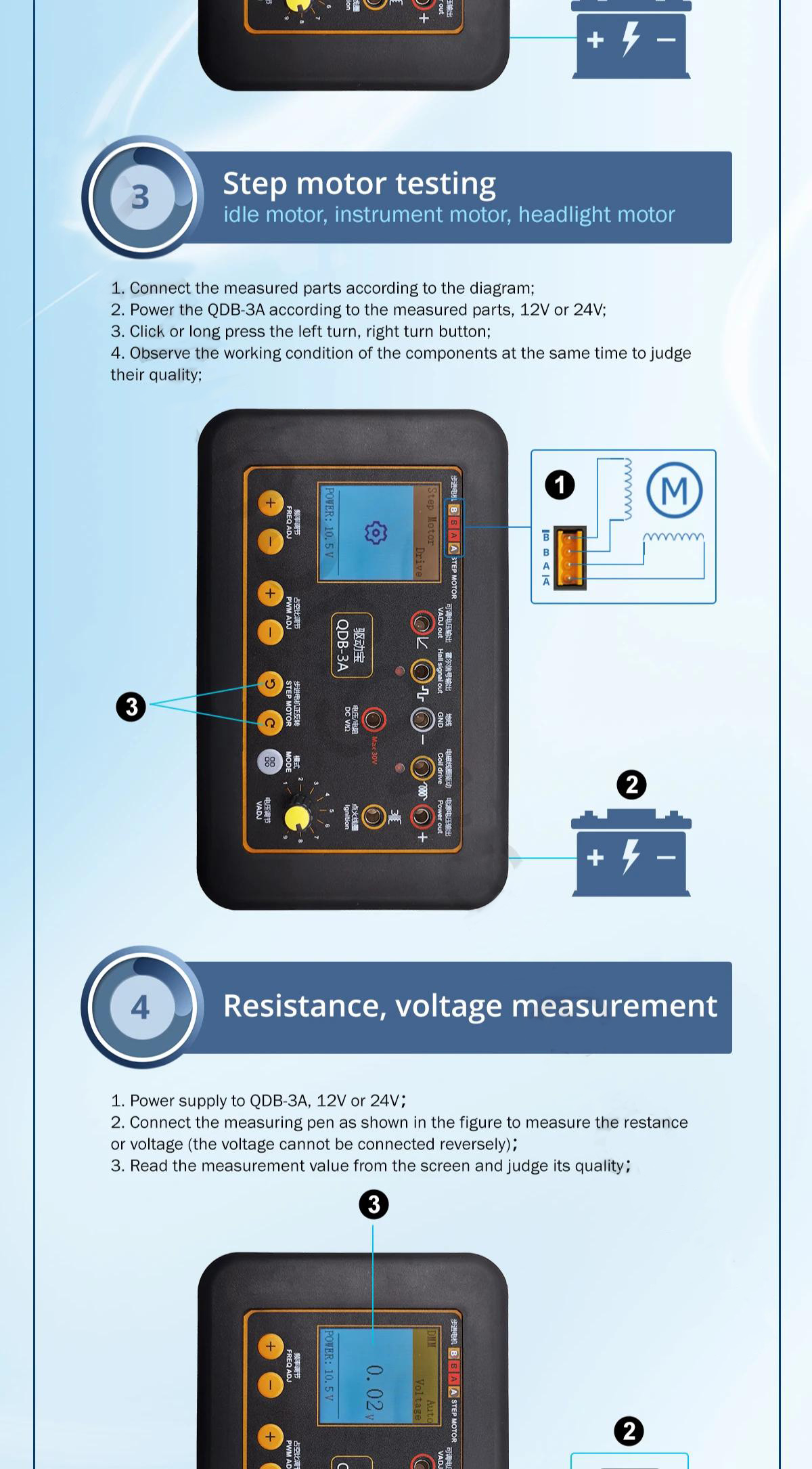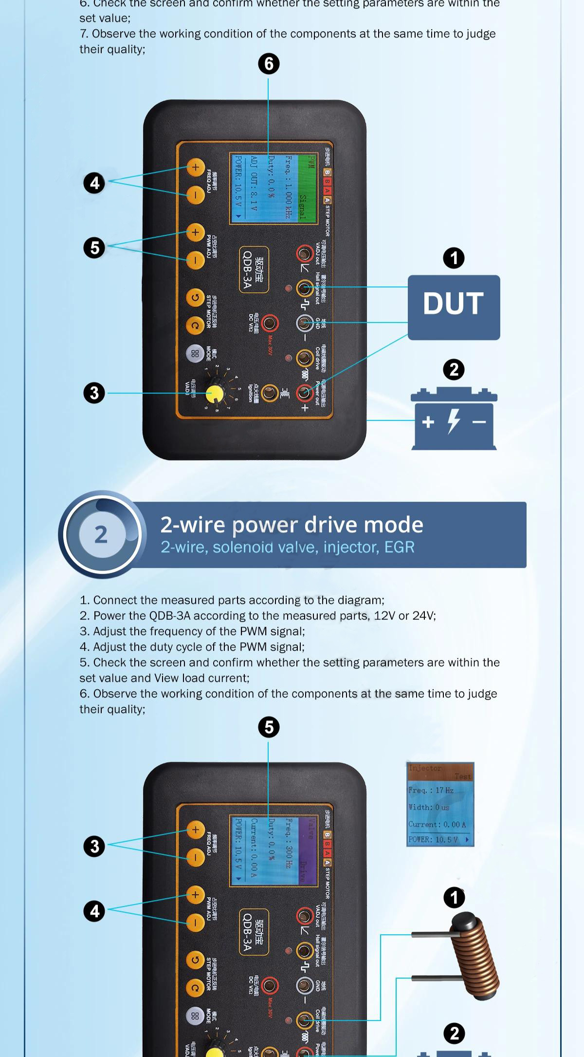 QDB-3A Auto Ignition Coil Tester Drive Detector Injector Solenoid Valve Idling Stepper Motor Instrument Fault Tester
