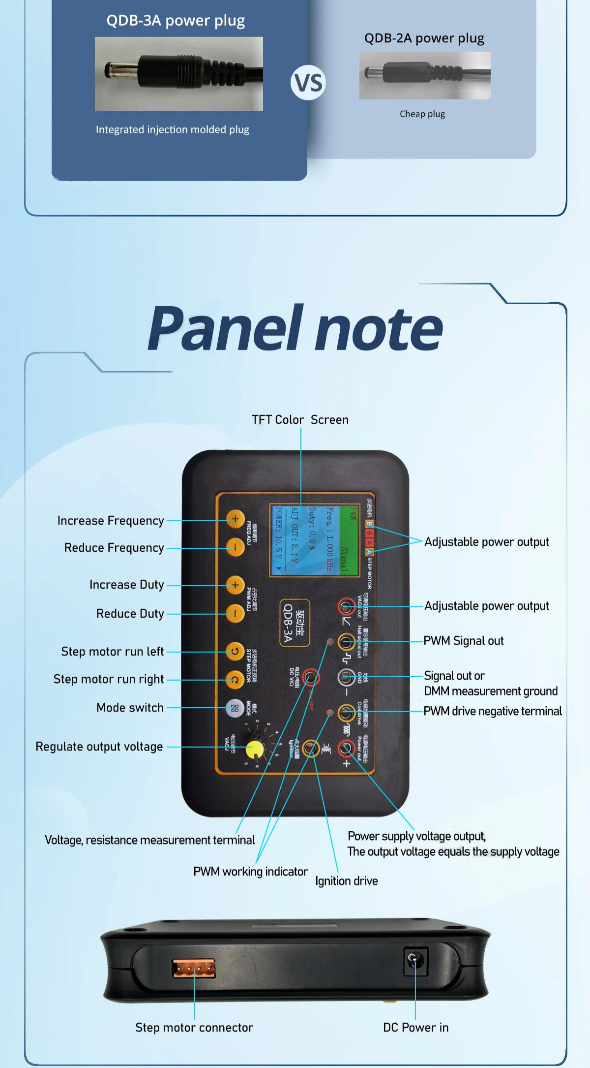 - Step motor: max 1.5A