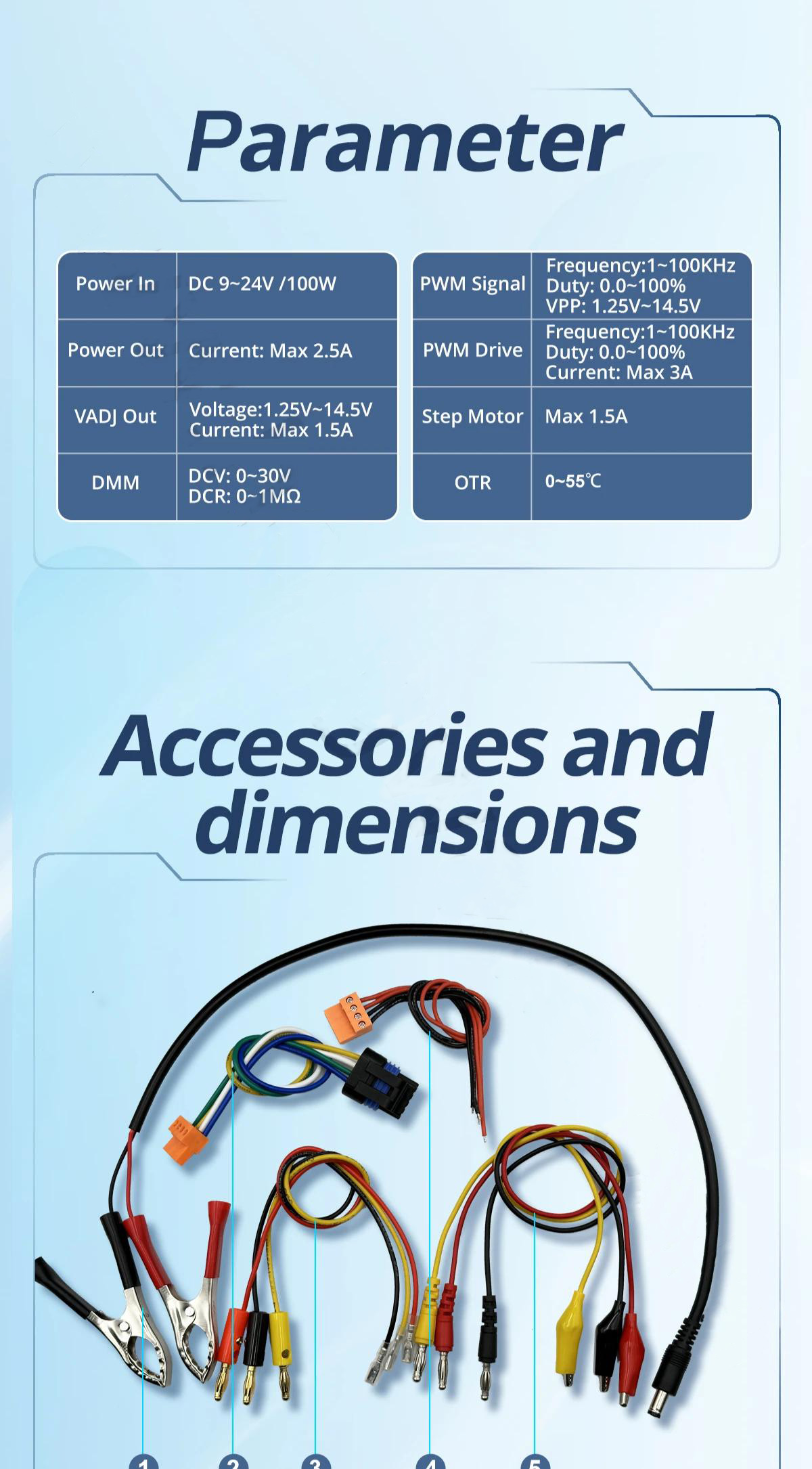 - Power in: DC 9 - 24V/100W
