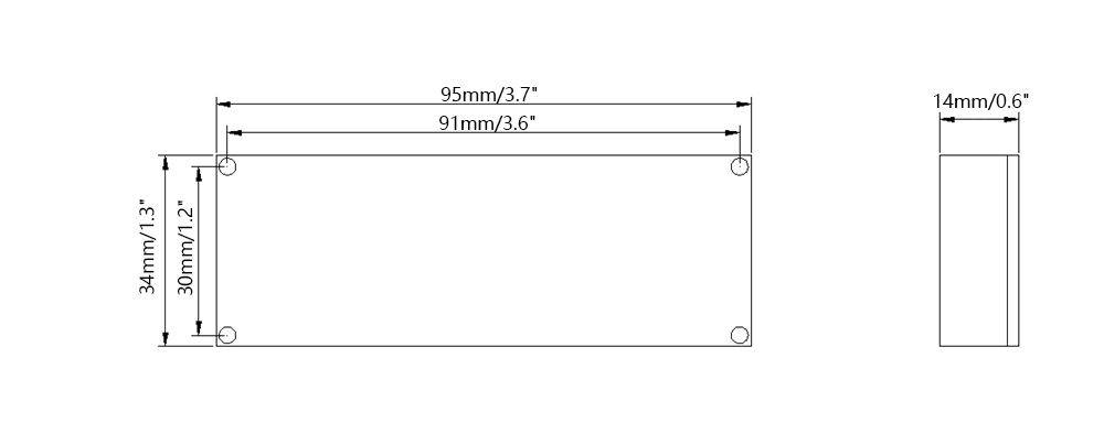 - Module size: 95 x 34 x 14mm/3.7 x 1.3 x 0.6" (not including the size of connectors)