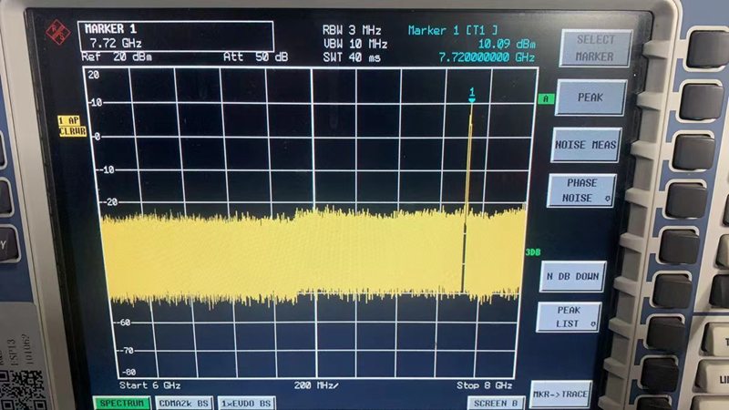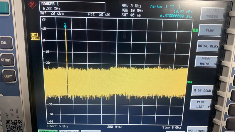 C-band point-frequency signal source is used to generate RF signals at 6.3-7.7GHz. At the same time, it can be used with sawtooth wave to generate sweep signals in the corresponding frequency band, which can be used for chirp signal generation.