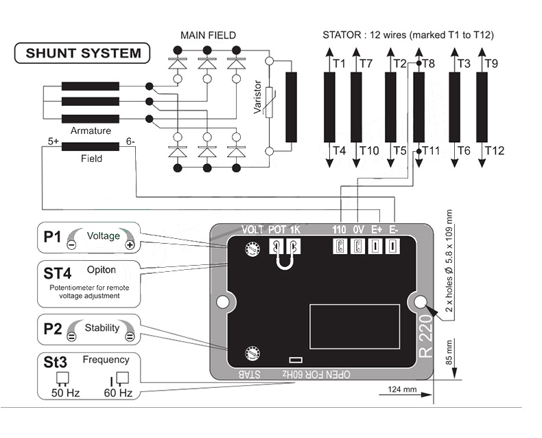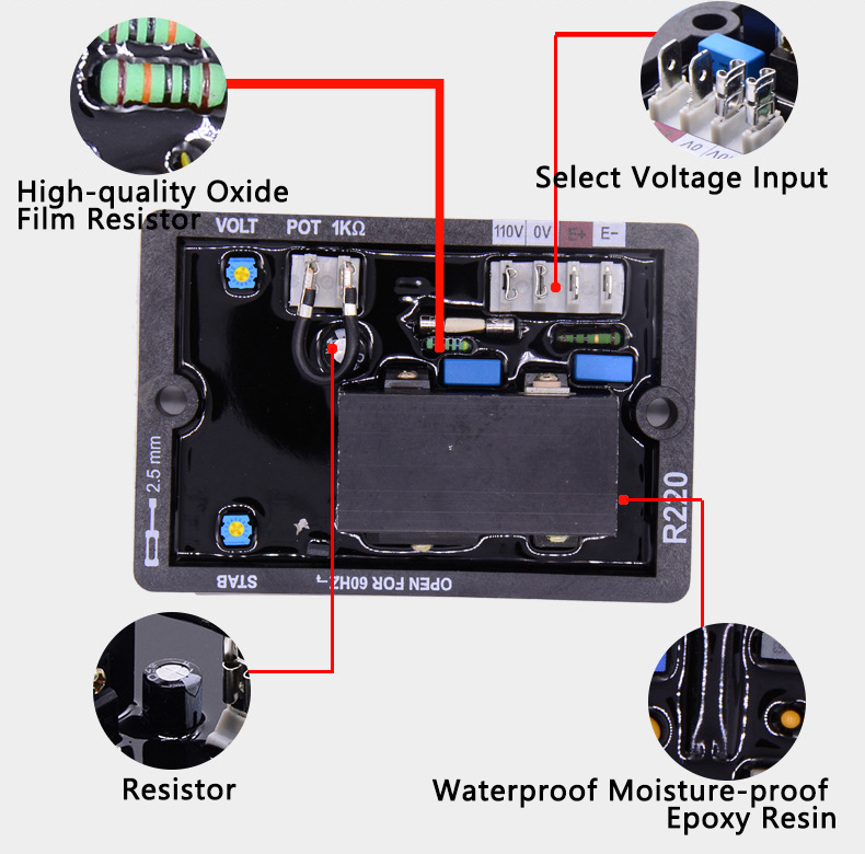 R220 AC Generator AVR Automatic Voltage Regulator Power Spare Parts Stable Performance Output 95V 6A