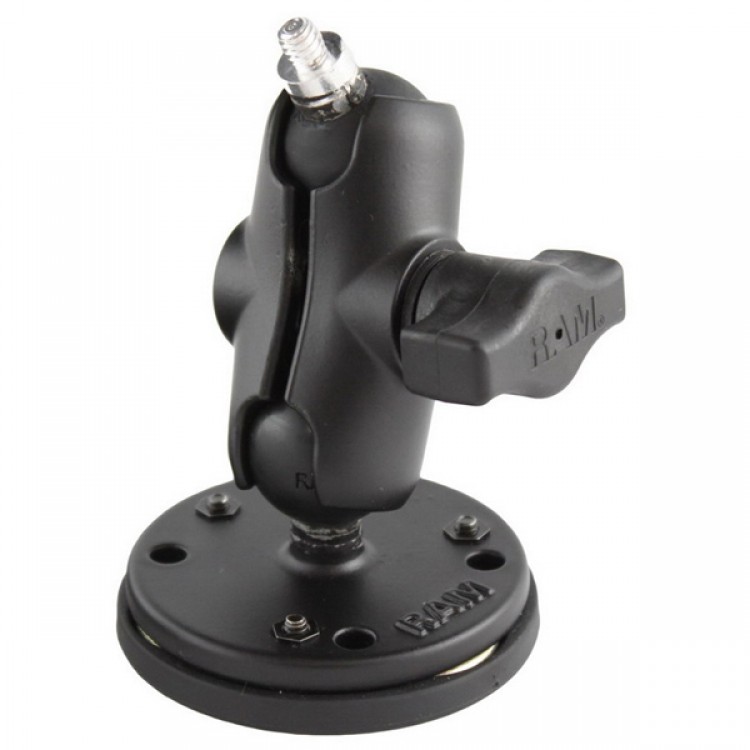 - Want an excellent surface mount without needing to drill holes? This is the answer. Includes the RAP-339U magnetic base added to the RAM-B-202U base, RAM-B-201U 3" arm and RAM-B-237U standard camera screw. This will permit the mount to then adhere to any ferrous metal and will enable you to avoid having to drill holes for your RAM mount. No modification to your camera is needed to use this heavy duty marine grade powder coated aluminum mount as this uses a standard 1/4"-20 mounting stud. Lifetime manufacturer warranty.